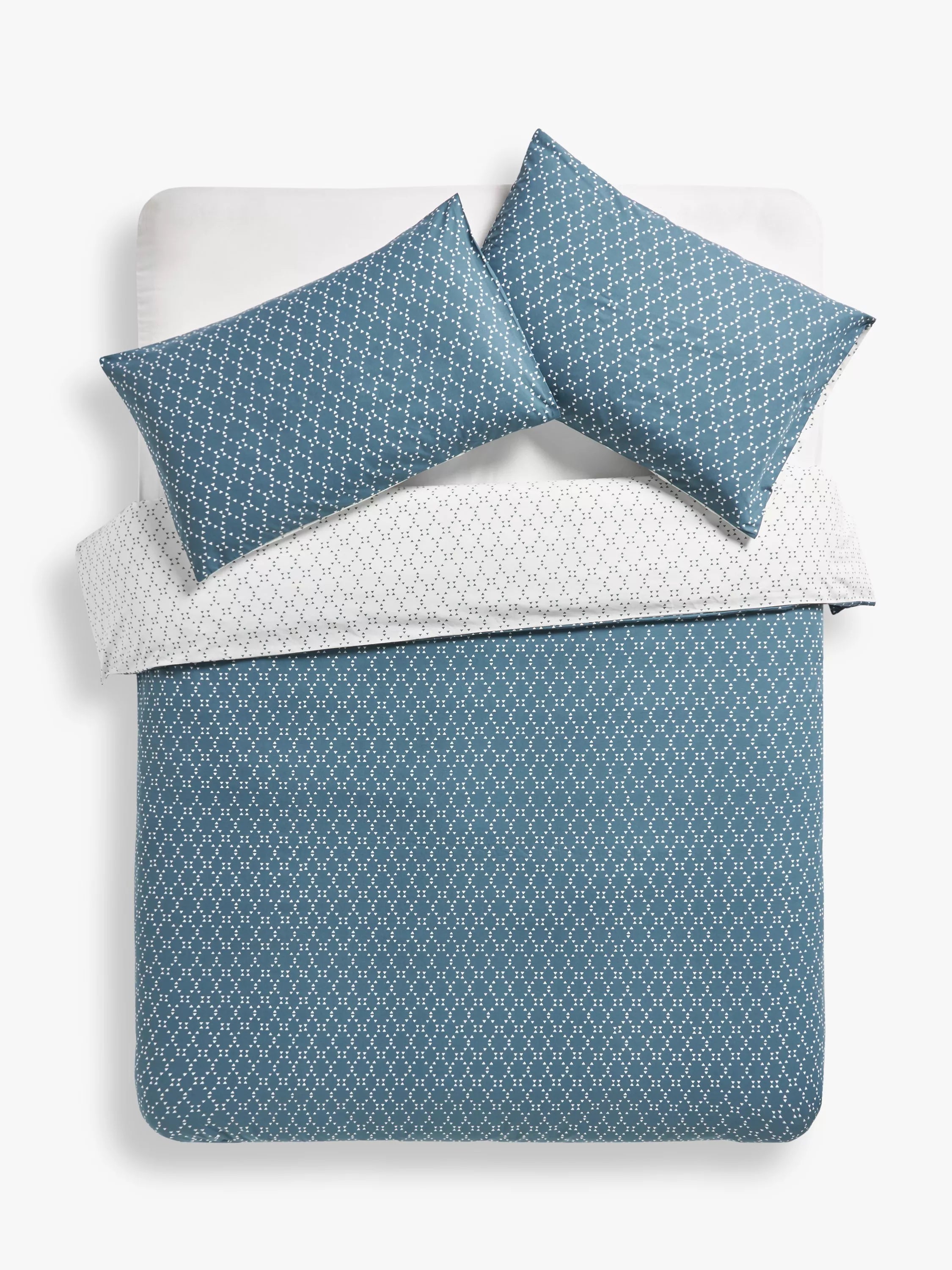 Achieve a modern and simple interior look with this eye-catching bedding range. With an all-over diamond dot design, the face features a mid-blue base, while the reverse offers a white foundation to offer you and your bedroom versatility.