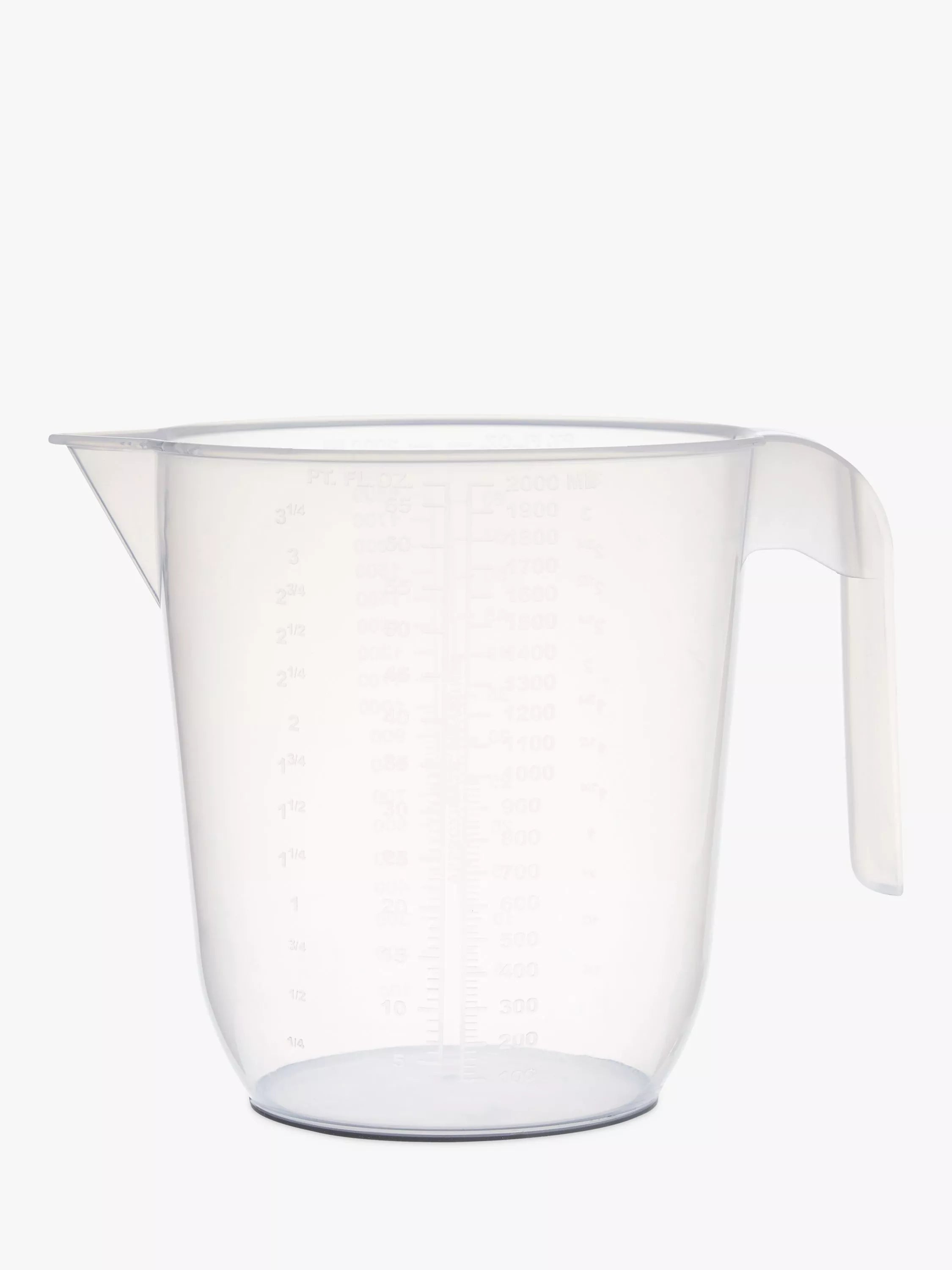 A practical plastic measuring jug at a great price, designed with a non-slip base to keep it stable. The lightweight jug has an easy-grip handle for comfortable use and a lip for accurate pouring.