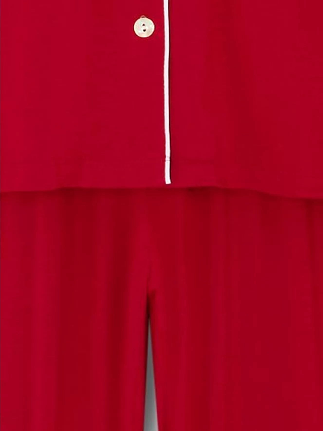 Offering a relaxed fluid fit in soft modal jersey, our Aria pyjamas are a cosy, comfortable option for cooler nights. They feature straight fit bottoms and a classic button through shirt with full length sleeves while the curved collar gives the top a softer, feminine look. This set is finished with smart trims in a striking contrast tone.