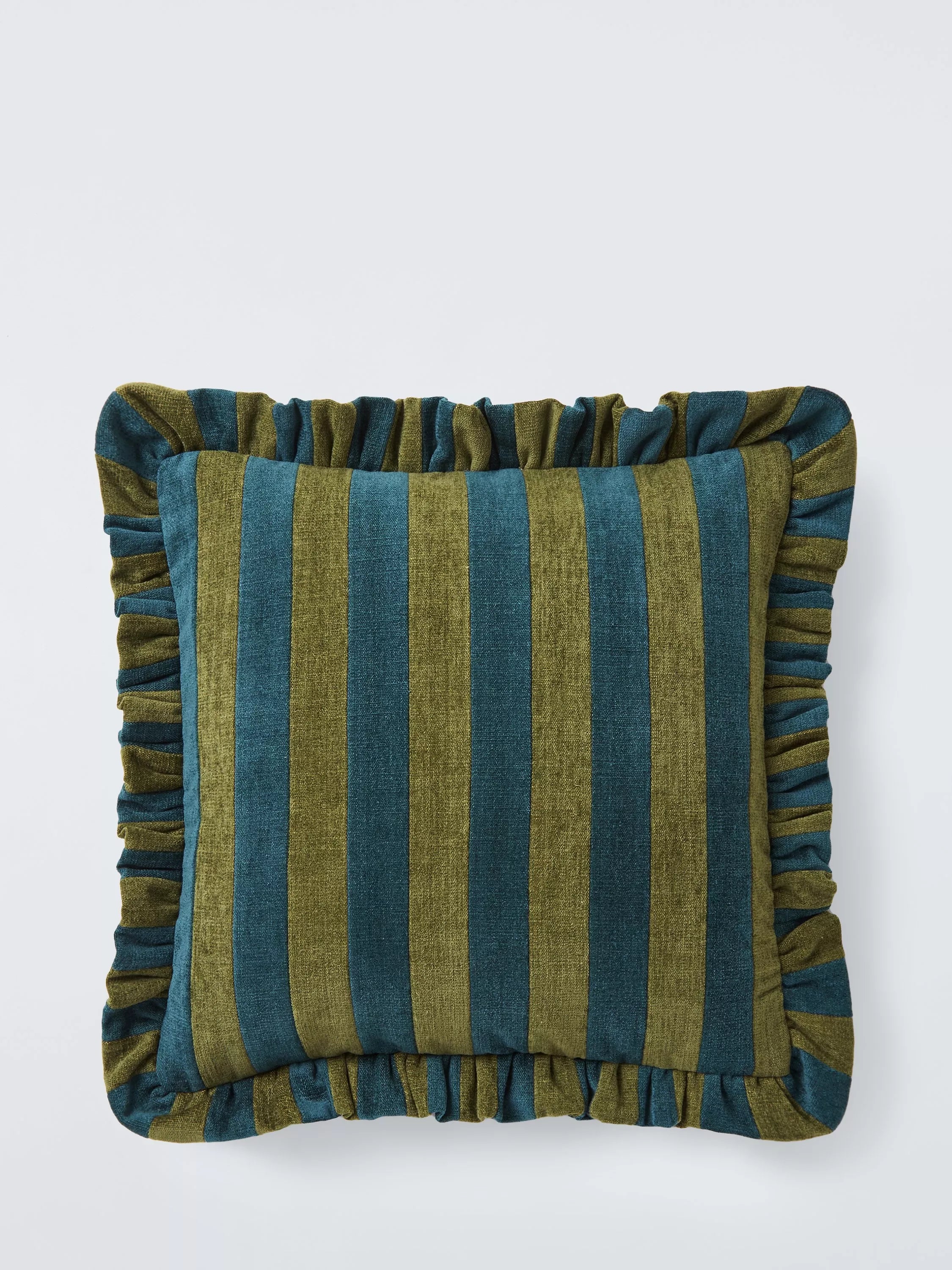 Add a touch of understated elegance to your home with this sumptuously soft chenille stripe cushion. Perfect for adding a touch of luxury to any room, this cushion offers both comfort and style. Its plush texture and delicate frilled edge make it a beautiful addition to your living space.