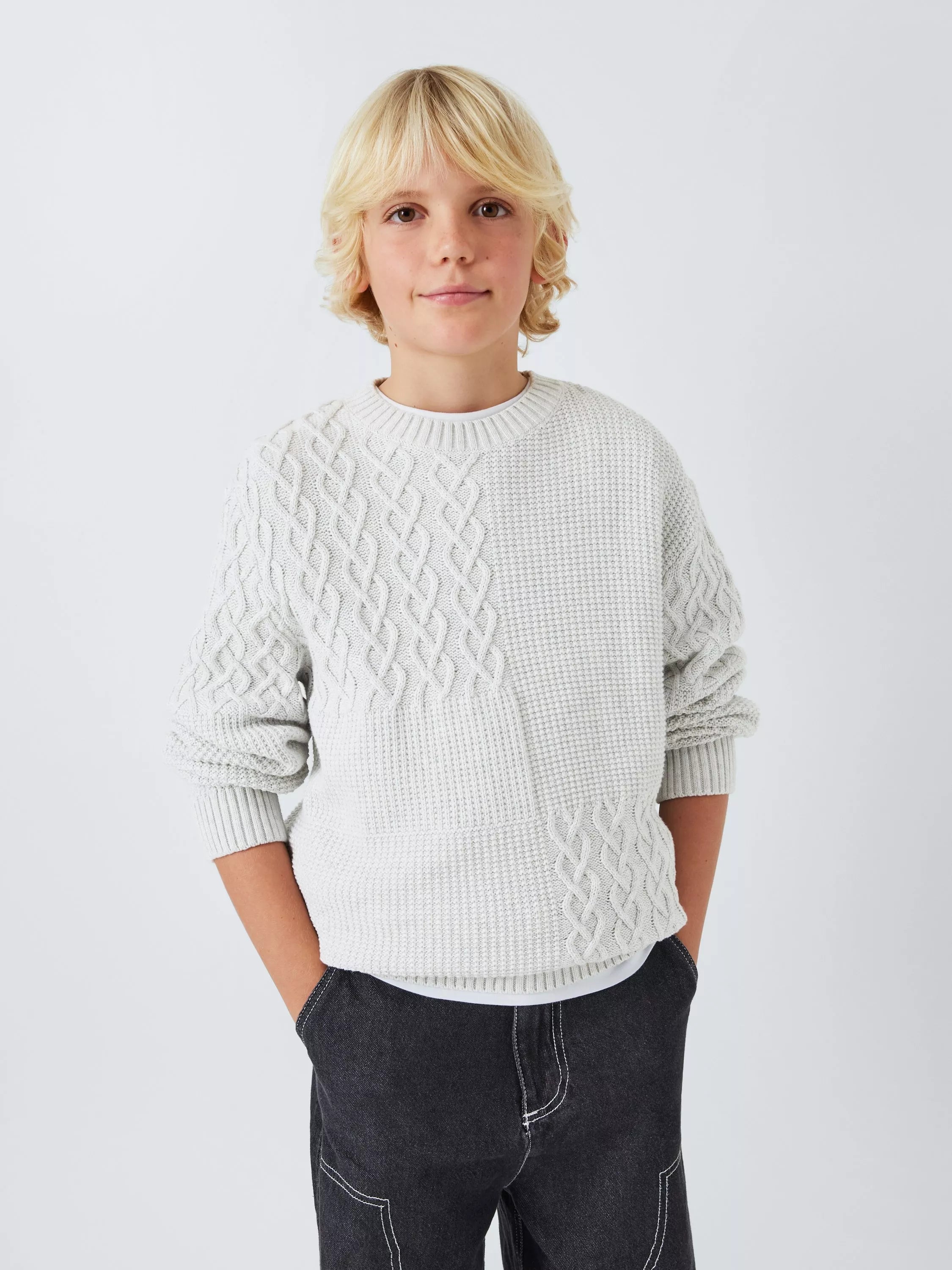 In an unusual and wintery patchwork cable texture, this jumper is made using 100% cotton for a high-quality and cosy fit.