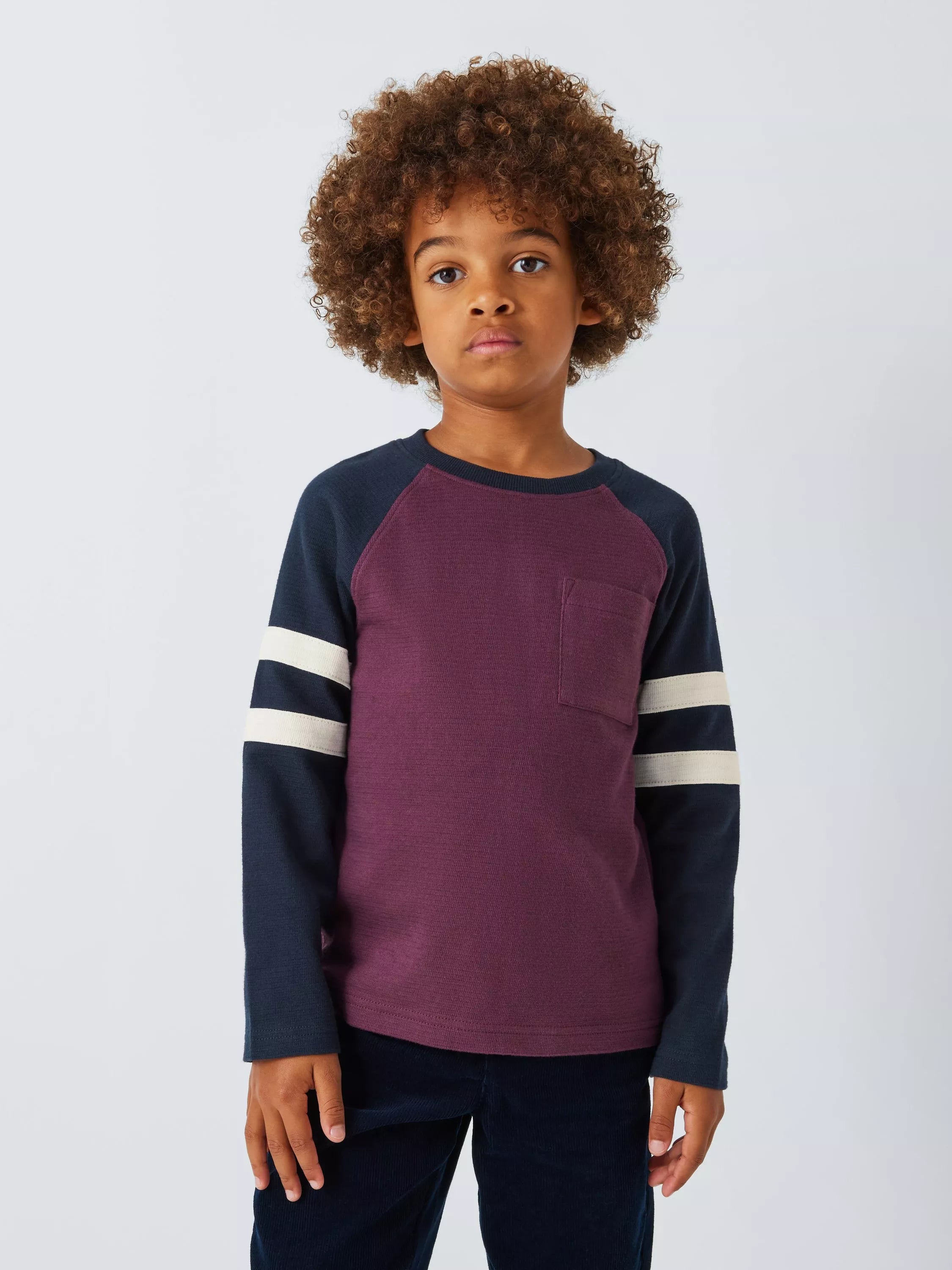 With a sporty raglan sleeve design with stripe detailing, this long sleeve top is made from 100% soft and breathable cotton jersey.