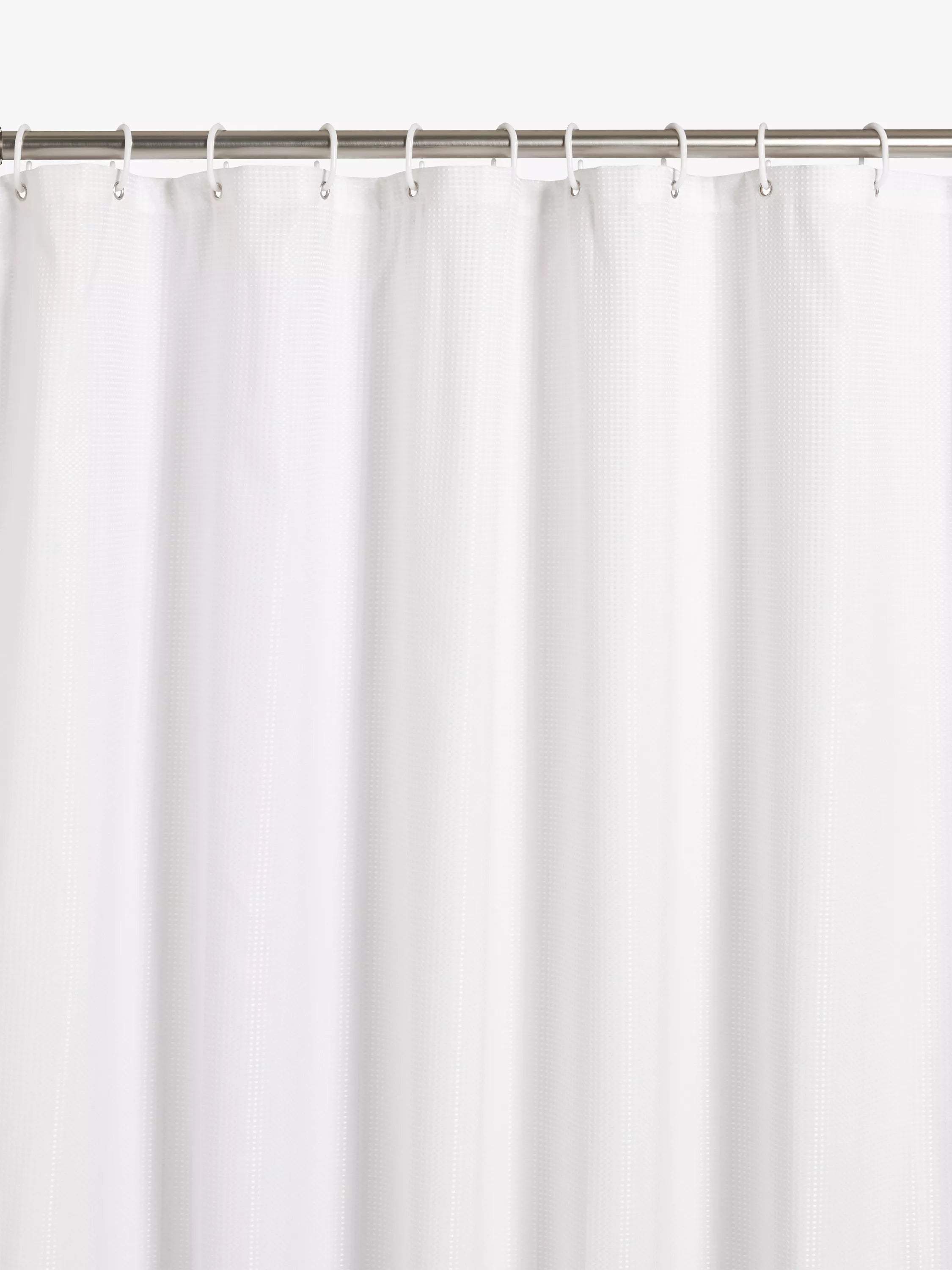 This soft, waffle-textured shower curtain is made from recycled polyester.