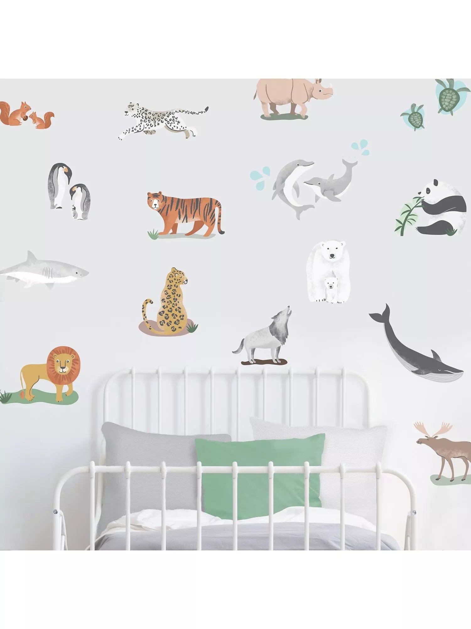 Use these colourful wall stickers for an instant room refresh. This set contains animals from around the world, and they're suitable for walls, mirrors, furniture and doors. The stickers peel off easily and they're also removable in case you want to reposition them elsewhere. Set up one eye-catching feature wall, or position them around the room to extend the animal adventure kingdom motif.