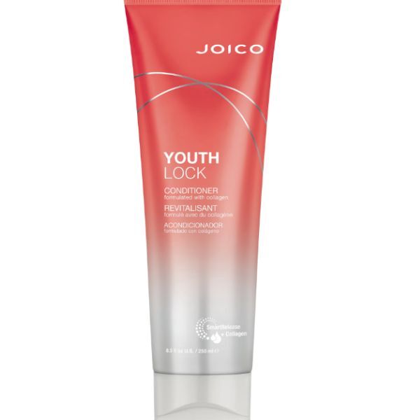 Joico YouthLock Conditioner 250ml restores elasticity and nourishes aging or fragile hair. Enriched with collagen and buriti oil, it strengthens, smooths, and adds shine for youthful-looking hair.