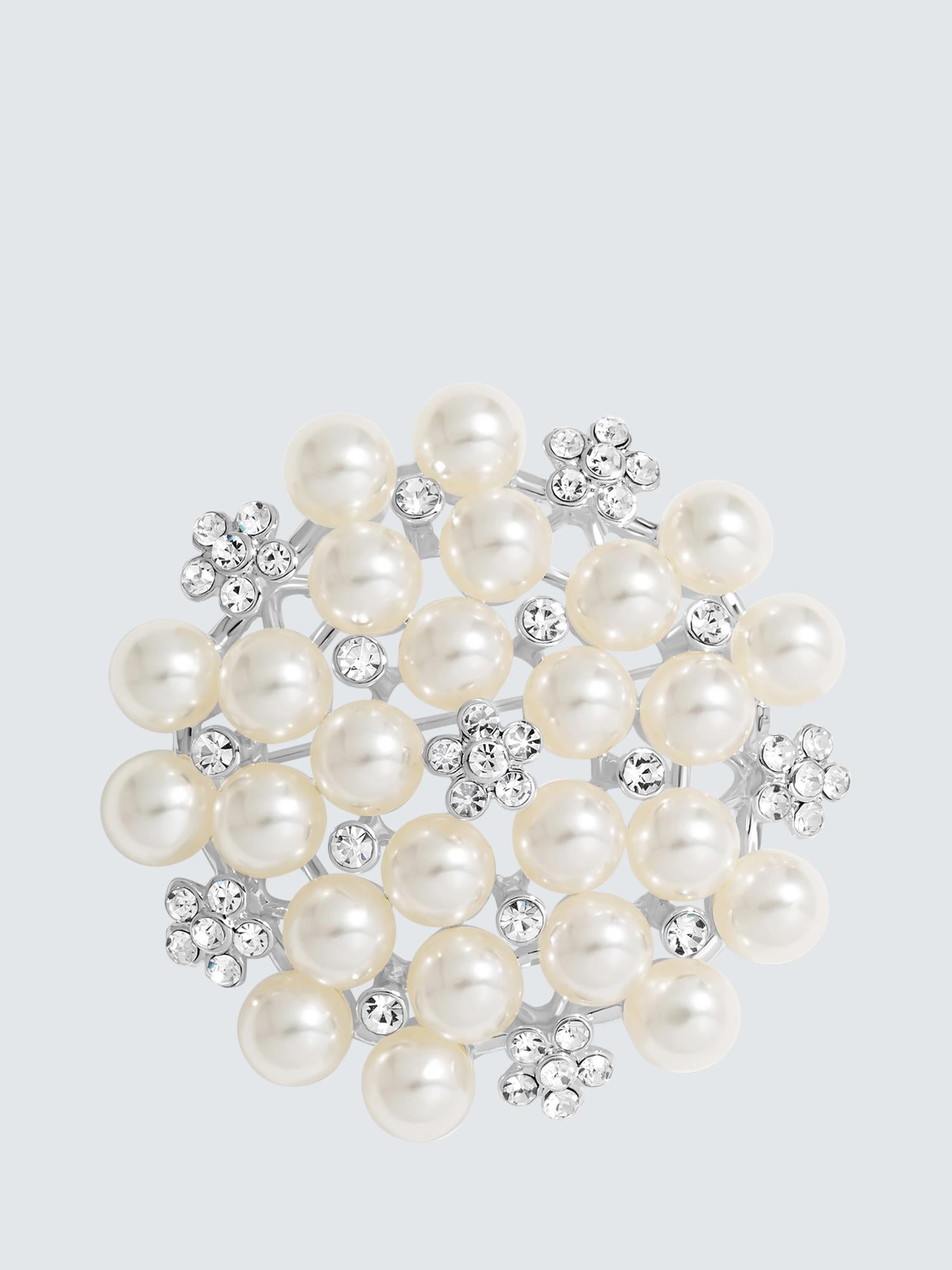 Jon Richard presents this elegant Pearl And Crystal Cluster Statement Brooch, crafted in a silver-tone setting for exquisite visual appeal today always. This detailed jewellery piece instantly elevates any outfit with its luxurious combination of imitation pearls and sparkling gemstones. Ideal for special occasions or refined daily wear here.