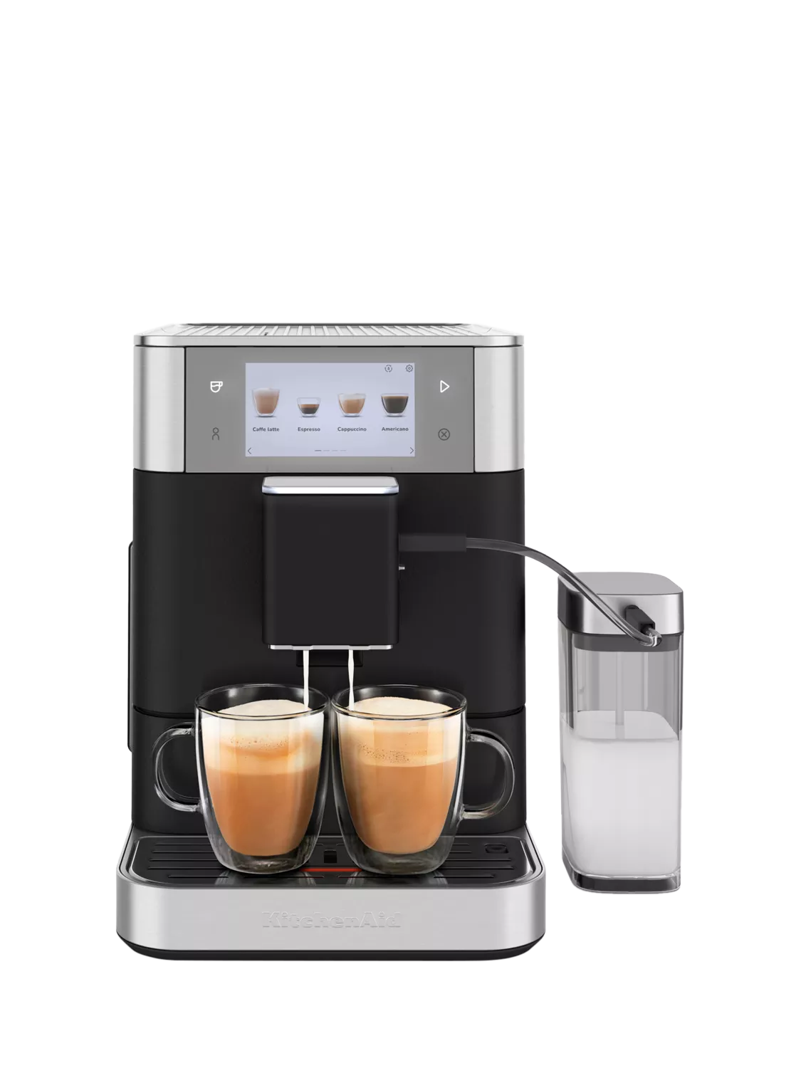 The effortless way to enjoy all your favourite espresso drinks at the push of a button. With a 12.7cm touch screen display, you can select 40+ pre-set recipes like Espresso, Americano, Cappucino, and more. Make them just the way you like them, with 1 or 2 shots and the option to customise by body, temperature, order of milk or coffee, milk and coffee volume too. You can even save your most-loved settings in up to 6 user profiles, so family and friends will have shortcuts to their go-to drinks. It comes with a removable bean hopper, so swapping beans is simple, as well as a milk hose and separate milk container providing automatic milk delivery system for up to two drinks. It even has a plant-based drink mode to steam a whole lot more than just milk. Sleek, compact design that saves on counter space, with metal-clad construction that is durable and built to last. Quiet Mark certified.