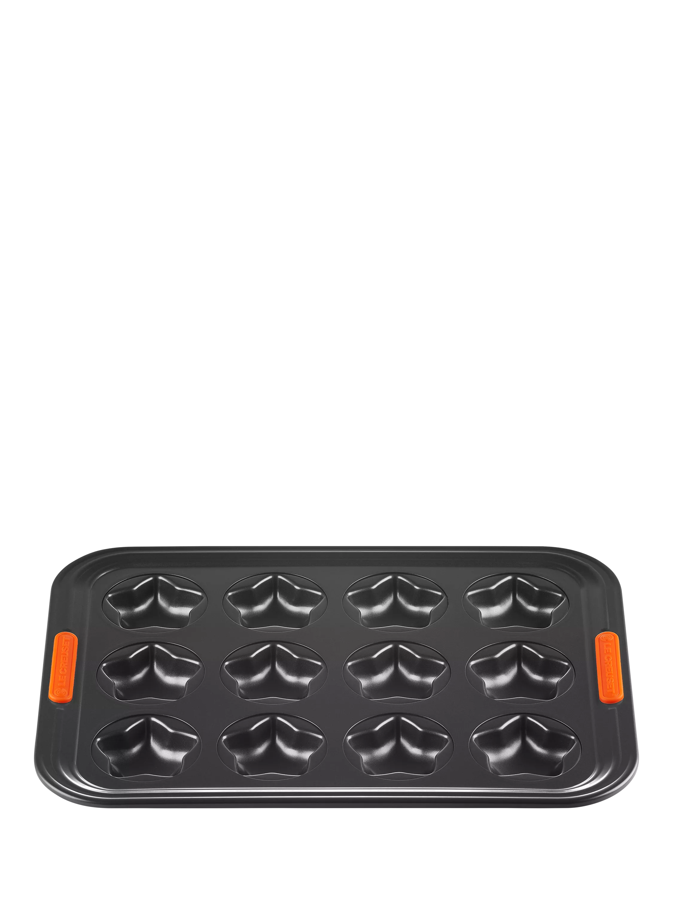 Unleash your creativity with this 12-cup baking tray. Each cup is star-shaped, so you can make festive cookies, cakes and more. The non-stick coating releases your treats effortlessly, for quality results. The wide rim on the outside of the tin, featuring heat-resistant silicone inserts for added grip, makes lifting a full tin easier and safer.