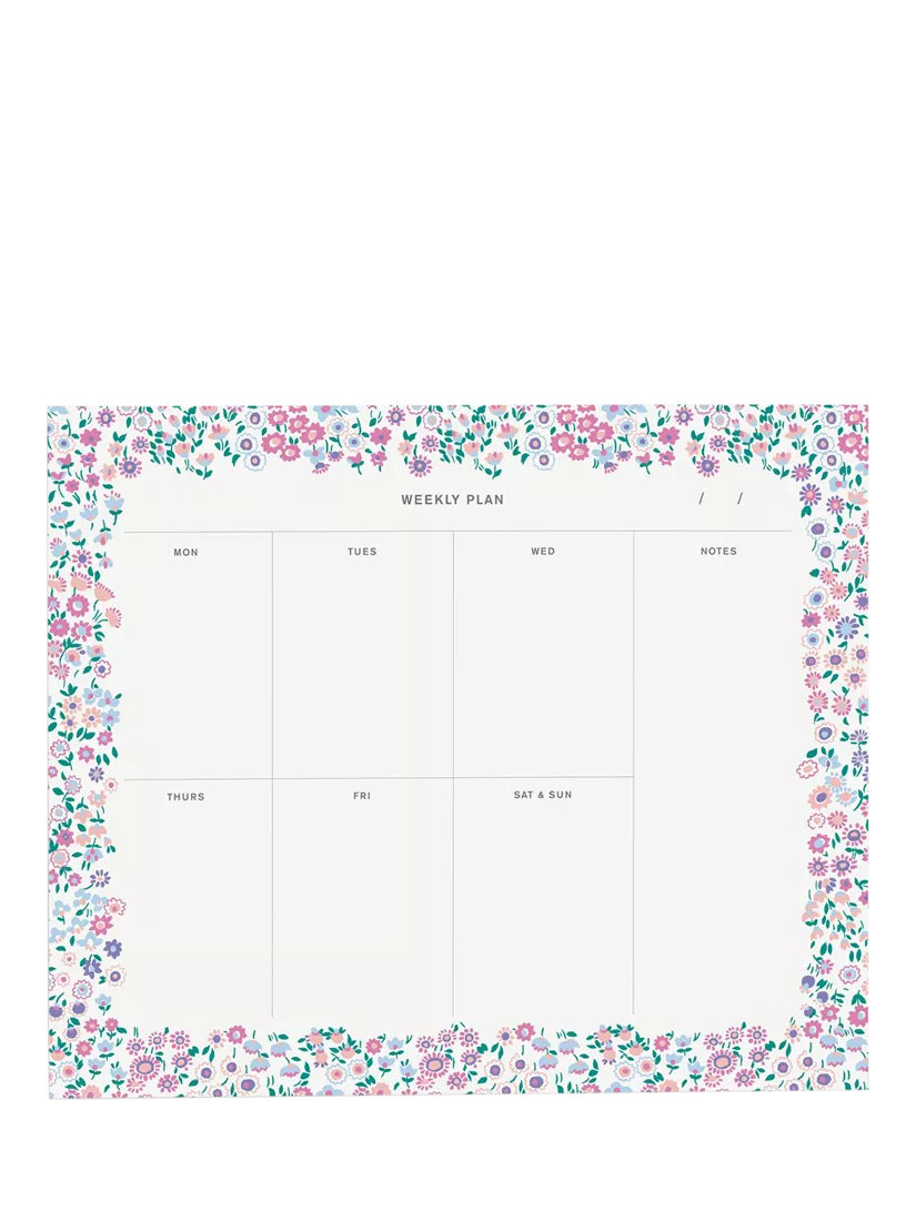 Plan your week in style with this charming Liberty London weekly notepad, featuring the delightful Cooper Dance floral print. A perfect blend of practicality and beauty, this notepad is ideal for keeping organized and adding a touch of elegance to your daily routine.