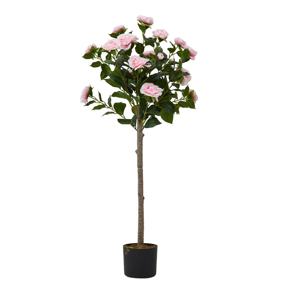 exquisite floral elegance the flowers are crafted from highquality fabric with intricate details replicating the charm of real camellias in full bloom flexible branches supported by an internal iron wire frame the branches can be easily adjusted and shaped to fit your preferred arrangement effortless maintenance no watering sunlight or pruning is needed making it a hasslefree addition to any space specifications overall dimensions 50cmw x 110cmh pot dimensions 15cmdia x 125cmh product type artificial plant material fabric flower plastic iron wire pot material plastic flowers colour pink pot colour black pattern camellia tree indooroutdoor indoor assembly required no package content 1 x artificial plant