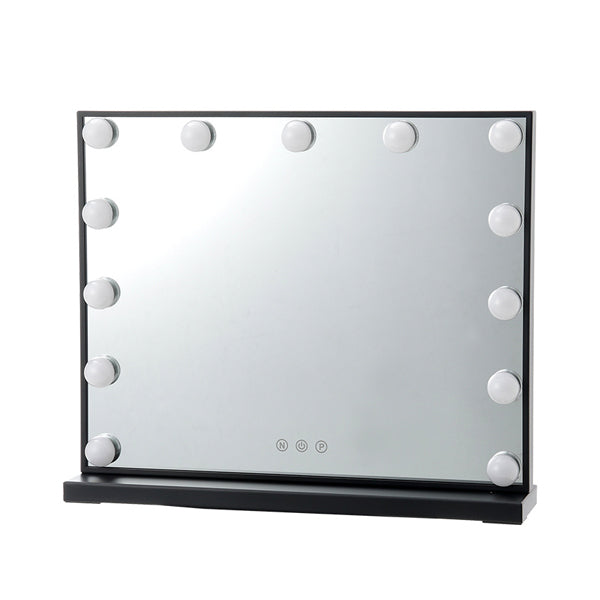 Large mirror surface for a full view LED lights around the mirror for clear and bright illumination Adjustable brightness levels to suit different lighting needs Touch sensor control for easy on or off and brightness adjustment Plug in powered, no batteries required Sleek and stylish design, suitable for any decor Specifications: Mount Type: Freestanding Frame Material: Metal Power Source: Plug-in Bulb-Type: LED Number of Light Bulbs: 13