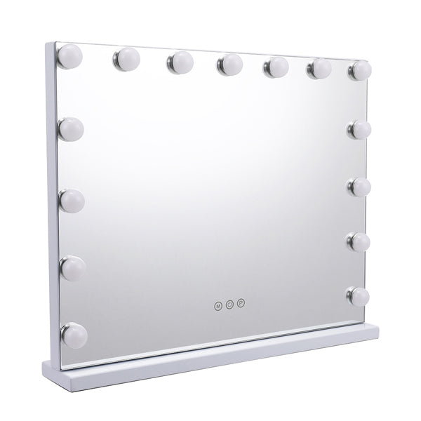 Achieve professional results with this tabletop Hollywood vanity mirror, featuring advanced smart touch screen technology for easy operation. This freestanding unit is constructed with a durable metal frame, designed to suit any dressing area or makeup station effectively and reliably.