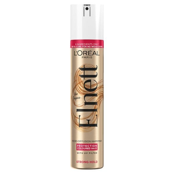 L'Oreal Paris Elnett is officially the UK's leading hairspray, providing up to 72 hours of strong yet flexible hold. This specialized UV filtered formula is designed to maintain the vibrancy and health of your coloured hair, ensuring lasting colour radiance.