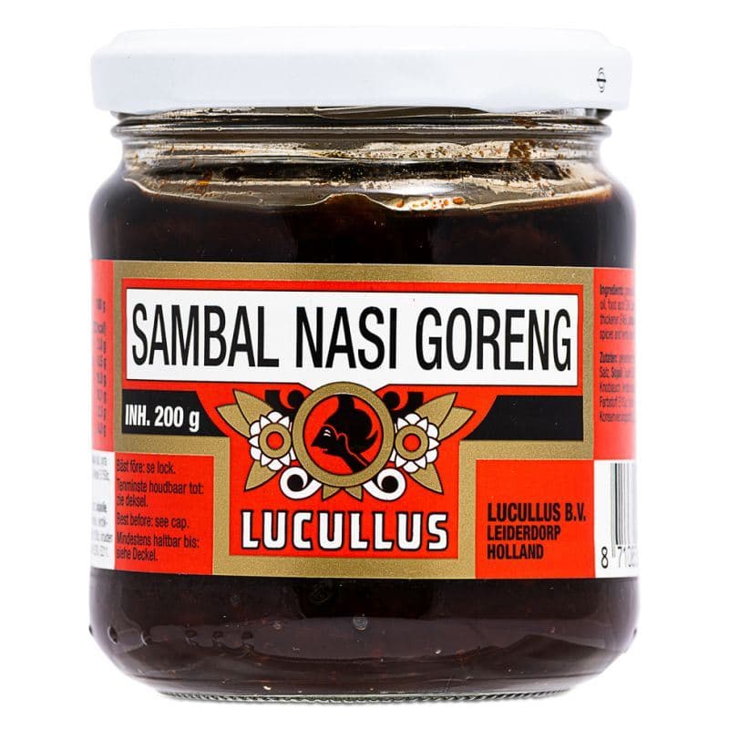Sambal nasi goreng is a spicy sauce used to make the much celebrated Indonesian fried rice dish, nasi goreng. Traditionally served at breakfast to use up leftover rice, this sauce packs in chilli and soy flavour. Sambal nasi goreng sauce also contains shrimp paste, onions, garlic and coriander. Mix some fried rice with sambal nasi goreng, perhaps adding some finely sliced carrots, a splash of kecap manis and a garnish of crispy shallots.