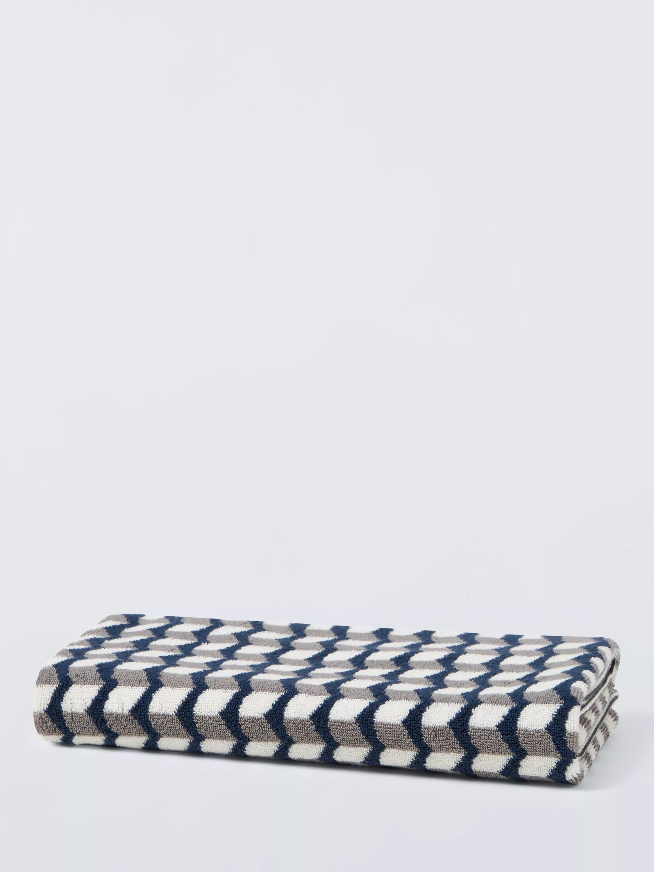 The Southwold design is an eye-catching geometric in shades of navy, white and grey.