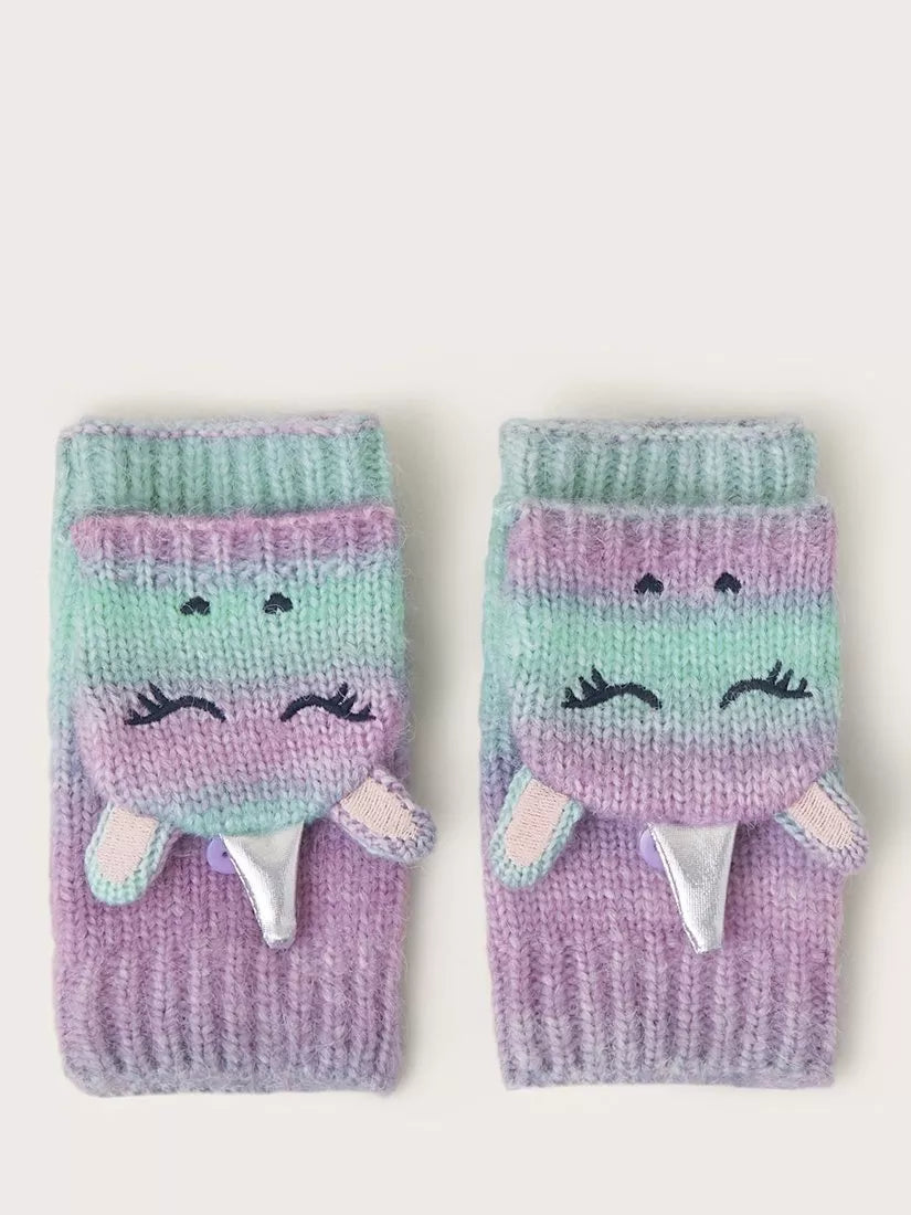 Give your little one magical winter warmth with these adorable Monsoon Kids' Unicorn Mittens! These versatile gloves transform from cozy mittens to fingerless gloves with a simple flip, perfect for active play. The charming unicorn design and ombre colours make them a delightful gift.