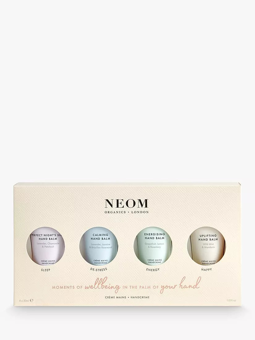 A collection of our nourishing 30ml hand balms with rich cocoa butter and skin-loving shea butter. Made with 100% natural essential oils for those special moments of wellbeing... in the palm of your hand.