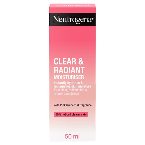Read MoreFormulated for blemish-prone skin, NEUTROGENA® Clear & Radiant Oil-Free Moisturiser gives 24-hour hydration without clogging pores. Developed with dermatologists, the refreshing, light formula has a pink grapefruit fragrance and helps to keep skin clear and radiant.