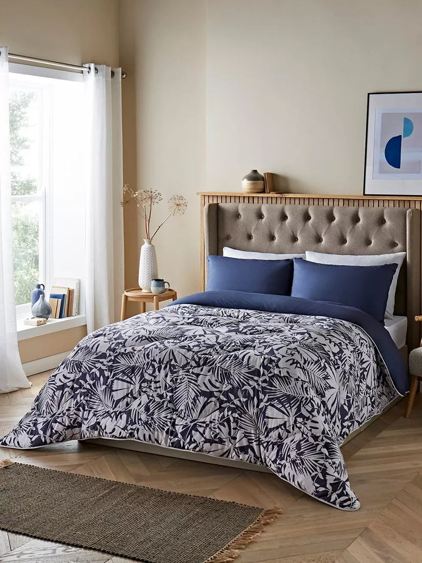 The soft Smartfil® filling is made from 100% recycled PET plastic bottles and it's both shape-retaining and ultra-washable. It's also quick-drying, so wash it at home and air or tumble dry it, and it will be back on your bed on the same day. The Winter Palms print on this coverless duvet is a soothing and simplistic design complete with palm shapes.