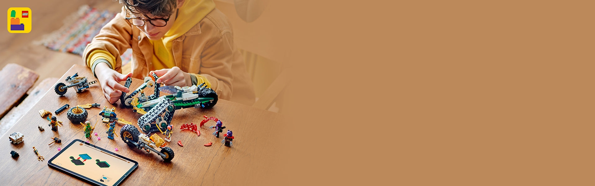 The LEGO® NINJAGO range of sets and buildable ninja toys for kids includes dragons, vehicles and temples so fans can role-play adventures with their heroes. Each ninja playset can be created with the LEGO Builder app, which guides you and your child on an easy and intuitive building adventure. Zoom in and rotate models in 3D, save sets and track your progress.