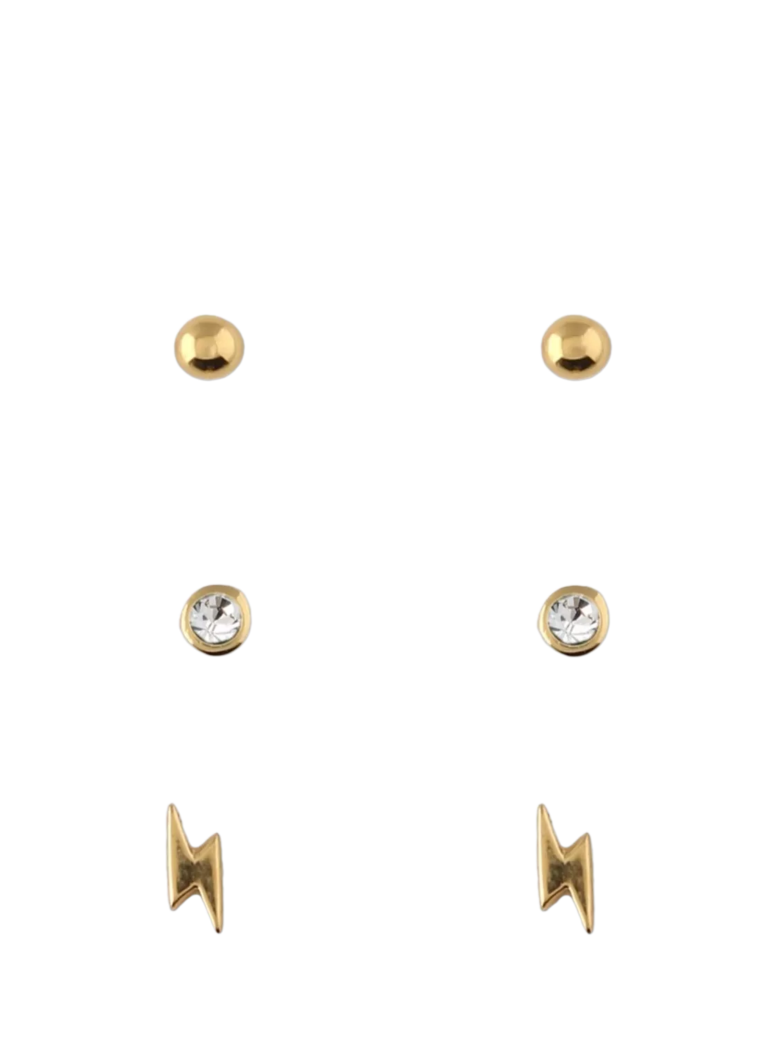 Elevate your style with this versatile set of three stunning earring pairs. Perfect for creating the ideal ear stack, these earrings offer a mix of classic and modern designs for any occasion. These are a great addition to your jewellery collection.