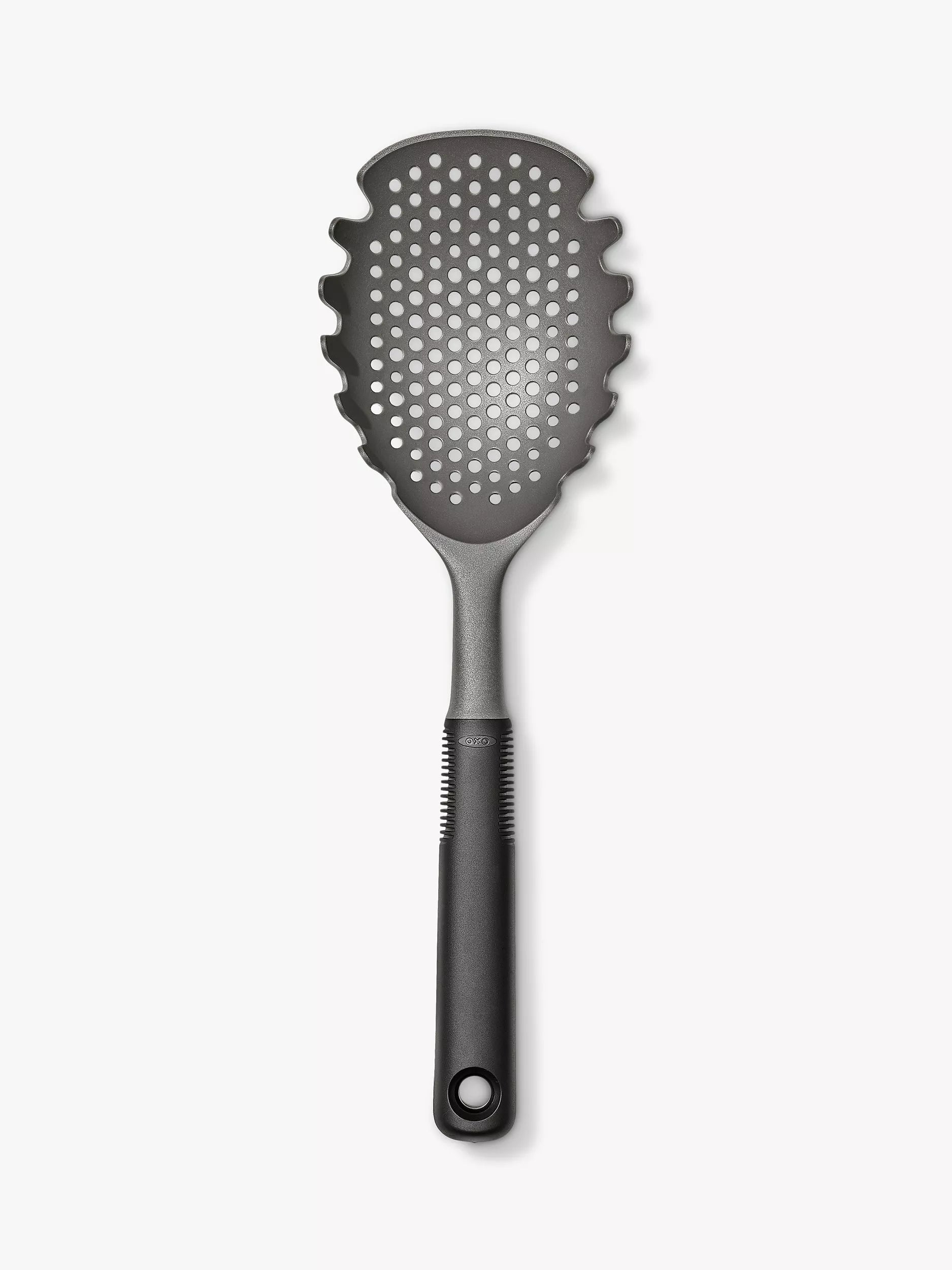 Making pasta but don't feel like digging out the colander? With the OXO Good Grips Pasta Scoop Strainer you can leave the colander in the cupboard to strain your long, short or delicate pasta.