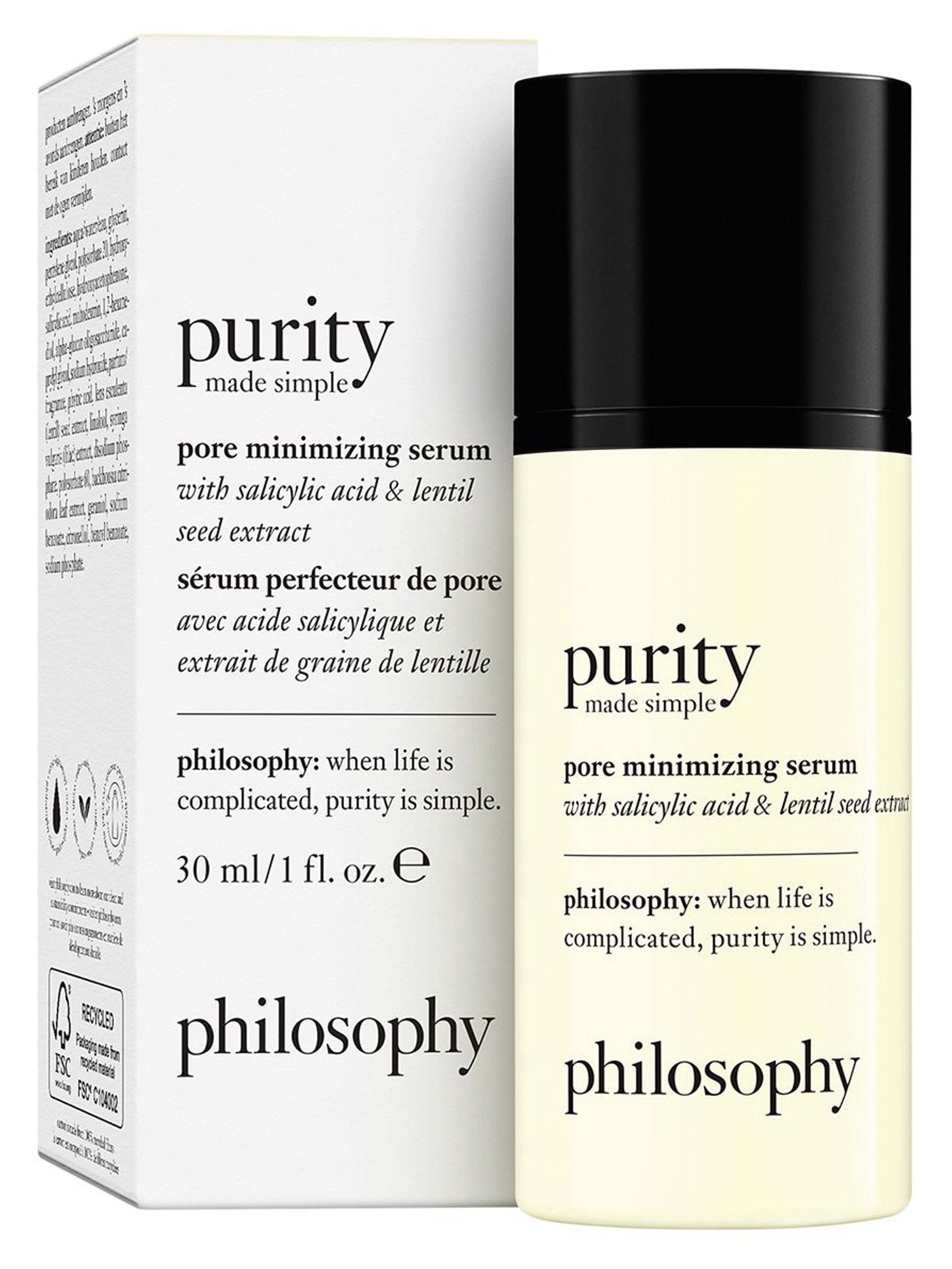 Pore problems? Philosophy has you covered with our new purity made simple pore-minimising facial serum, clinically proven to minimise pore appearance by 29%. This pore-fecting powerhouse is designed to decrease the appearance of pores instantly and over time, for skin that looks balanced, perfected & makeup-optional.