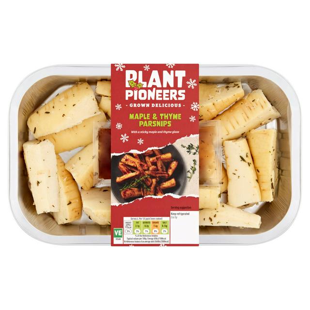 Product details Description Parsnip wedges tumbled in rapeseed oil and thyme, with a sachet of maple and thyme glaze Grown Delicious With a sticky maple and thyme glaze Suitable for Vegans For information on Reference Intakes go online to www.sainsburys.co.uk/FoodLabels Quick nutrition guide ENERGY 409kJ 97kcal 5% FAT 2.1g 3%...