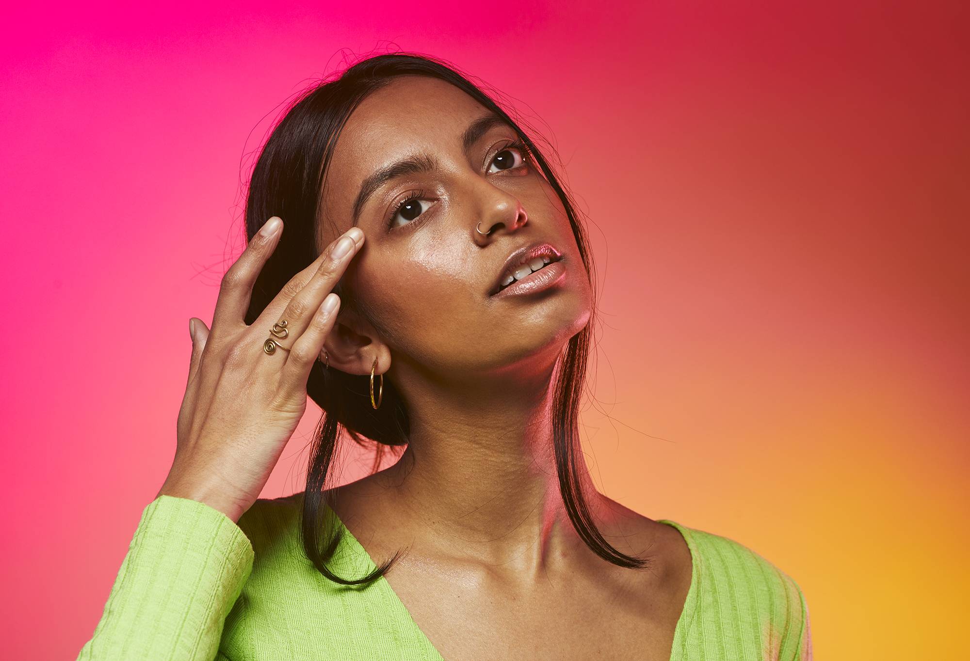 Use fingers to apply to your brow bone, inner corners of the eyes and along your Cupid's bow for a chic but subtle shimmer in the light. For stand-out metallic shine layer up onto your cheekbones and down the bridge of your nose, by applying directly onto the skin and blending with a Lush makeup brush.