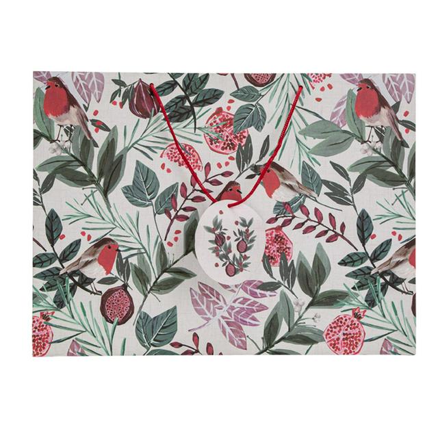 Sainsbury's Home offers this Extra Large Gift Bag, specifically designed to accommodate substantial volumes of presents securely. It features a beautifully detailed Festive robin and foliage illustration, elevating visual appeal significantly. This oversized carrier ensures wrapping large gifts becomes quick and straightforward for any celebration today.