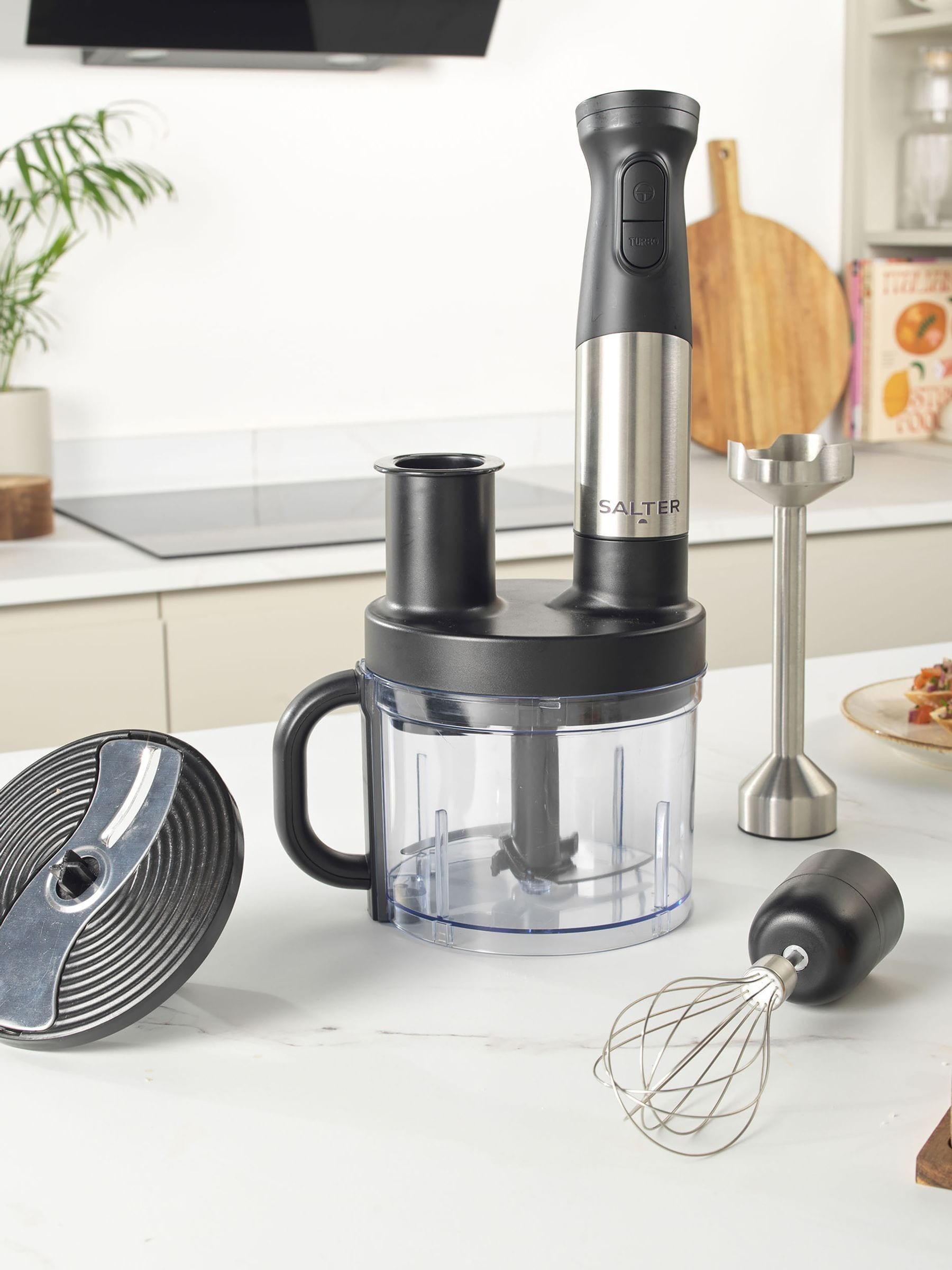 Meal prep has never been easier thanks to the Salter 5 in 1 Blend & Chop! Designed with 5 functions, this handy kitchen appliance can chop, slice, shred, blend, and whisk, providing everything you need to create your favourite dishes. The compact food processor is designed with a 1.2L BPA-free chopping bowl and stainless-steel blades for quick and precise chopping. Offering 2 speeds so you can alter the settings to achieve your desired consistency for soups, dips, smoothies, shakes and more!