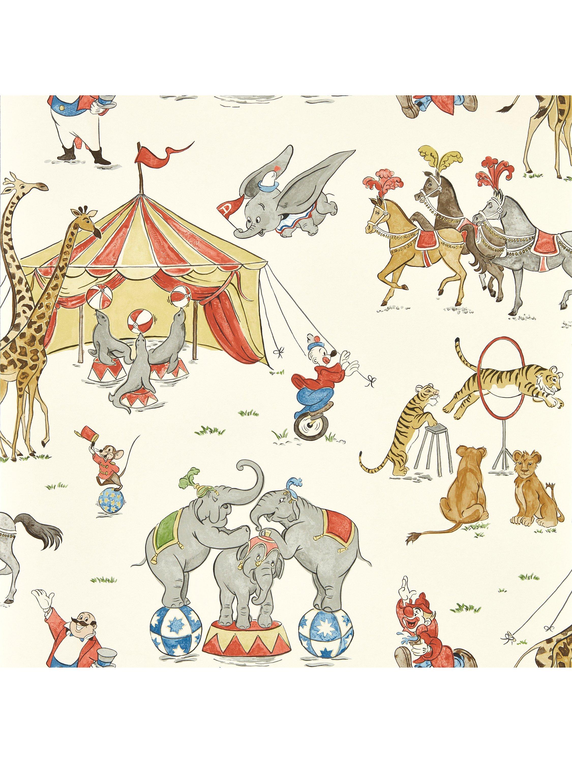 Head off to the big top with Disney`s Dumbo in this charismatic archive-inspired wallpaper. A hand-painted lineup of original entertainers including plumed horses. leaping tigers and inquisitive giraffes tell the story of this famous circus tour.