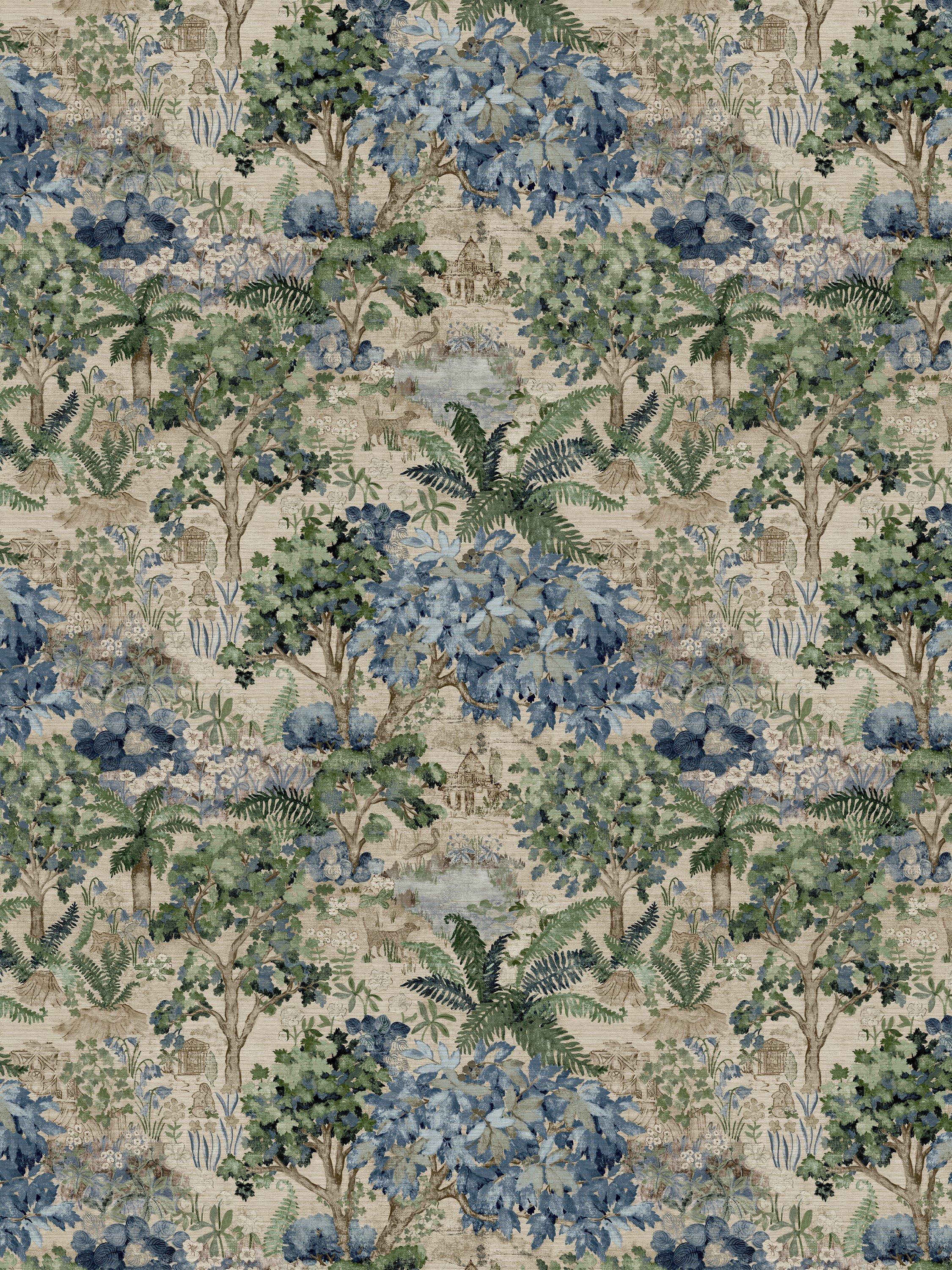 This Sanderson Wallpaper Mural captures a scenic woodland habitat inspired by the unique Victorian Stumpery garden style. It presents an atmospheric design where ferns grow from upturned tree stumps, celebrating sustainable, rich natural environments within your home. This large decorative piece transforms any room.
