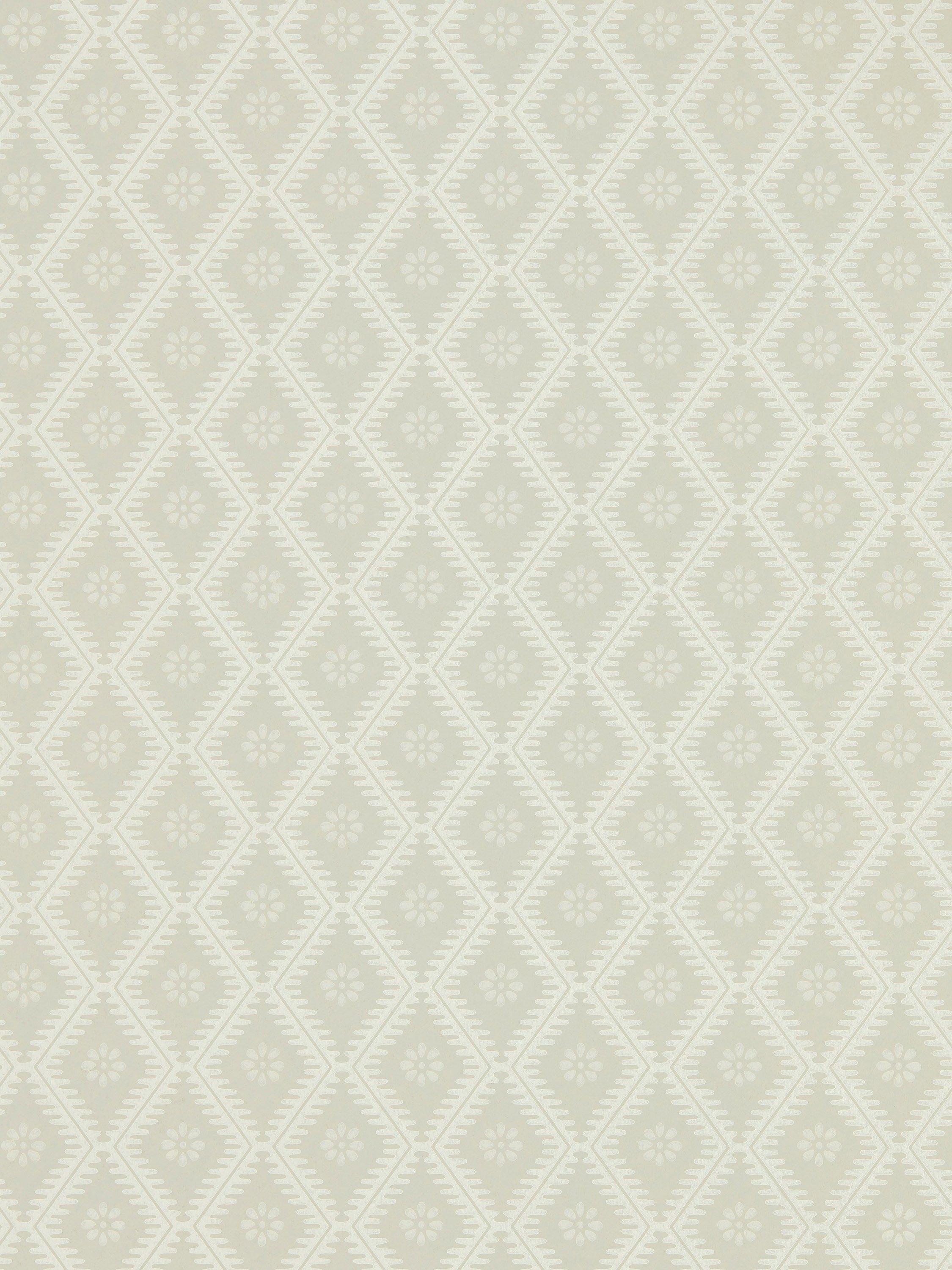 Whites and metallics combine to create this contemporary geometric trellis with a block printed effect adding textural detail and authenticity to the design's chalky ground.