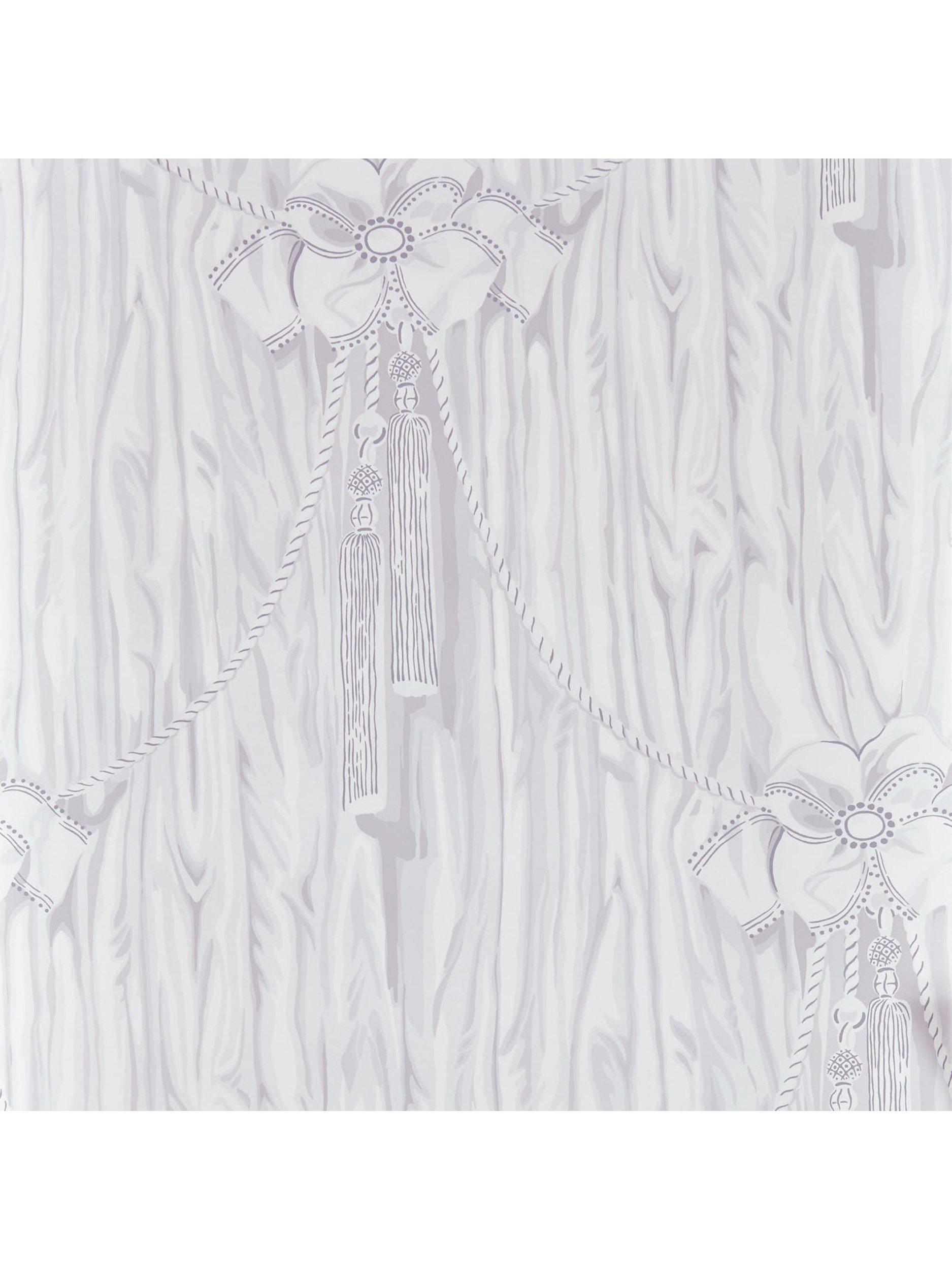The Sanderson X Giles Deacon Wilsford Wallpaper in Tyrian Lilac powerfully represents a modern collaboration celebrating classic archive reinterpretations thoughtfully brought forward. Giles Deacon explored specific mid-late nineteenth-century Sanderson archive originals, focusing intensely upon Trompe-l'oeil renderings of draped fabric elements. This stunning, illusionary print convincingly depicts flowing curtains, delicate bows, and textured ribbons, adding immediate visual richness.