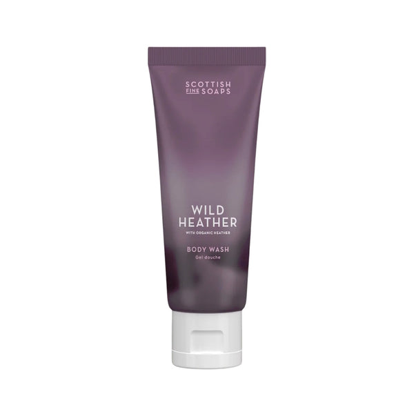 Wild Heather fragrance with organic heather Vegan-friendly and made in Scotland Nourishes and hydrates your skin Floral-inspired calming scent experience Ethically crafted with premium ingredients Experience the essence of nature with Scottish Fine Soaps, infused with the delicate Wild Heather fragrance, complemented by the natural richness of Scottish organic heather. This collection brings the calming, floral scents of Scotland’s wild heather fields directly to your self-care routine, enveloping your senses in a serene, soothing aroma. Body Wash 75ml: Body wash to capture the cleansing power of a majestic moor, with lactic acid and wild heather extract to gently cleanse, exfoliate and refresh skin and hair. Whether you are treating yourself or searching for the perfect gift, each piece offers a pampering moment with the signature, long-lasting fragrance. Each product is crafted with premium ingredients to nourish and hydrate your skin, leaving it feeling soft, refreshed, and beautifully scented. Vegan-friendly and made in Scotland, these products are a perfect addition to any skincare routine. Let the calming floral aroma of Wild Heather and Scottish organic heather transport you to the heart of Scotland’s wild heather fields.
