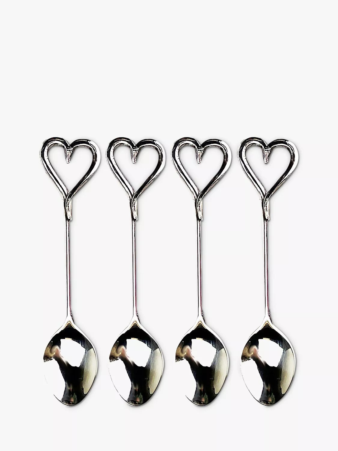 Beautiful stainless steel spoons topped with a sweet heart-shaped moulding. This delightful set of four spoons adds a touch of elegance to shared moments such as after-dinner desserts, afternoon tea or even tea and coffee time. They come gift-boxed, making an ideal present for weddings, engagements and anniversaries.