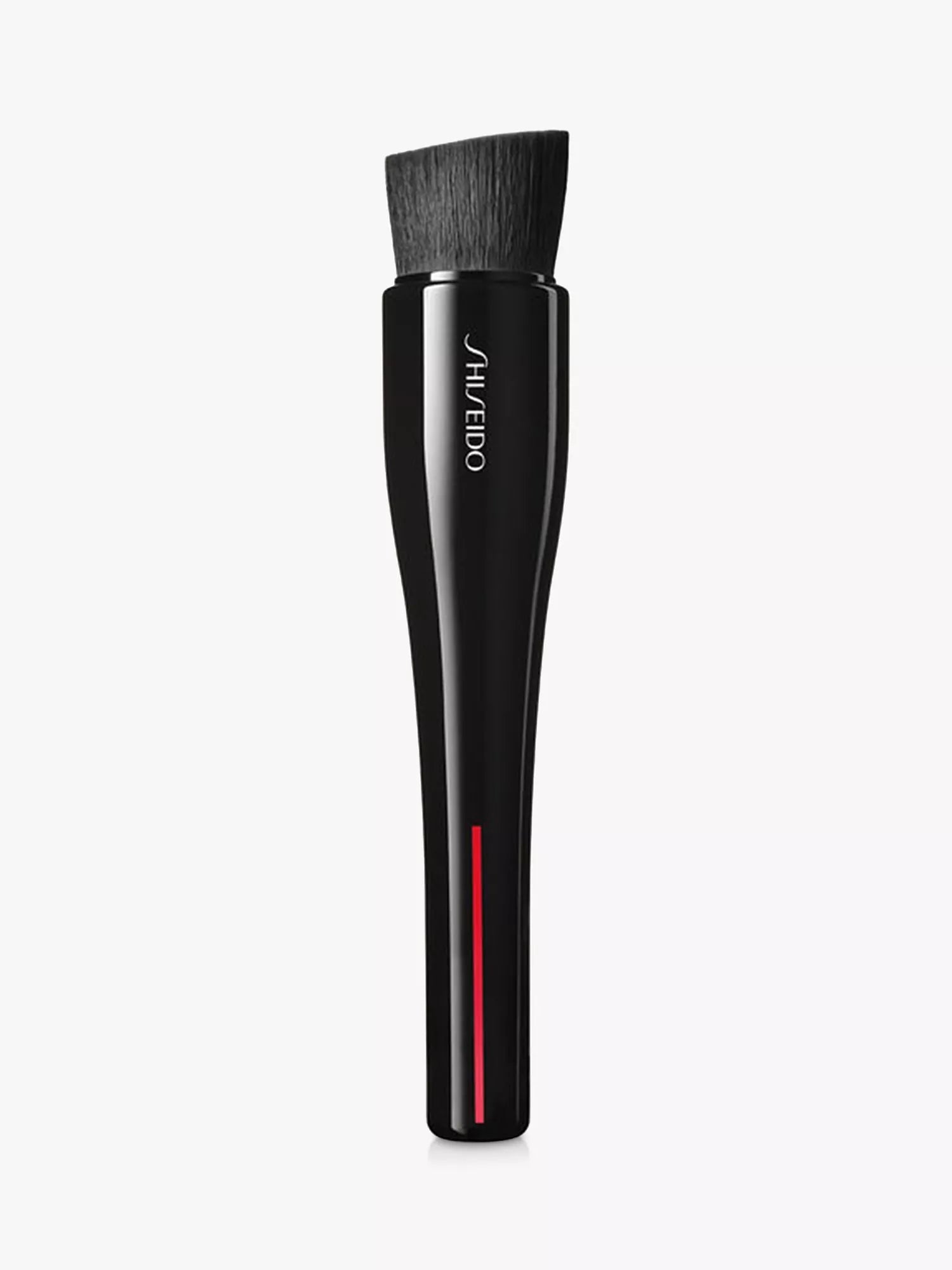 Handcrafted in Japan, this uniquely angled brush offers a flat surface to evenly distribute foundation without streaking or caking, and a short, ergonomic handle for precision and control.