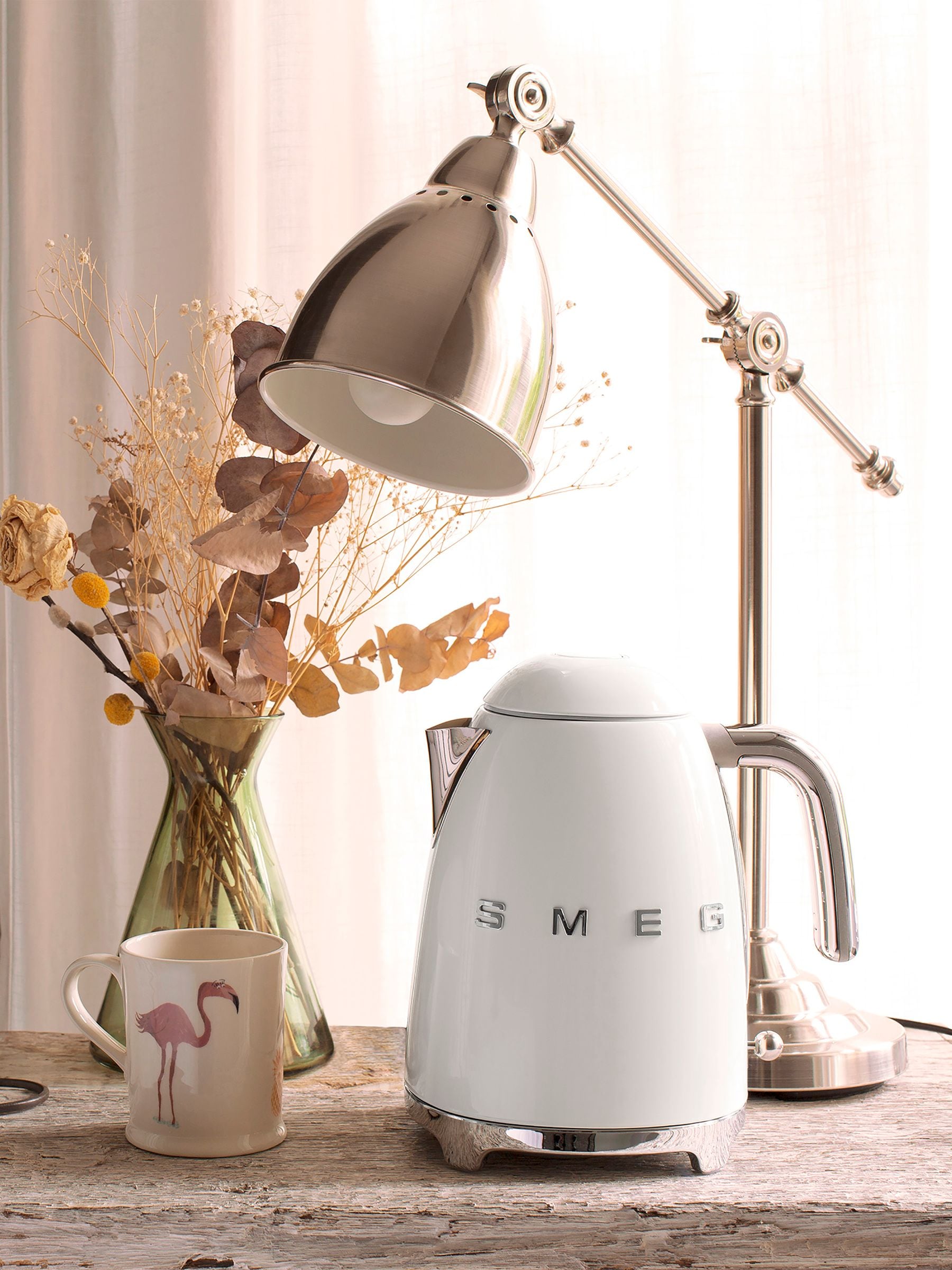 Product Features: A 1.7 litre or 7 cup capacity with an automatic shut off if turned on while empty. Soft open lid to ensure that condensation runs back into the kettle. Easy Cleaning with a concealed element and removable limescale filter. Super fast boiling with a 3000W output Product Description: Smeg's iconic retro design offers a pop of colour and a premium enamelled finish, excl. handle. With a generous capacity of 1.7 litres, Smeg KLF03 kettle makes up to 7 cups of tea or coffee. The spout has been specially designed with a balanced weight for an easy pour. The elegant soft opening lid not only looks beautiful but allows for easy filling and ensures that any condensation runs back into the kettle.With a 3000W power output, the KLF03 offers superfast boiling and there is also an automatic switch off at 100?C for added piece of mind. Cleaning is made easy thanks to a removable limescale filter in the pouring spout, and concealed element in the base, removing any impurities before getting to your cup.The 360? swivel base means that the KLF03 can be placed anywhere in the kitchen, and has a handy 1 meter cable tidy to keep your countertop clear. The anti-slip feet will ensure that the KLF03 stays firmly in place no matter the task. Product Specification: Description Kettles - Kettle in Cream. Product dimensions 248x226x171 mm (HxWxD). Max capacity 1.7lt / 7 cups. Temperature settings no. Auto switch off Yes, at 100°C. Power 3000 W. Cord length 1 m. Integrated cords wrap Yes.