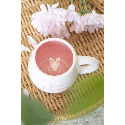 This charming mug brings a cosy and heart-warming feel to your daily routine. It features pink 'Some Bunny Loves You' text on the exterior for a sweet aesthetic. Enjoy your favourite hot beverage while anticipating a delightful surprise waiting inside the base.