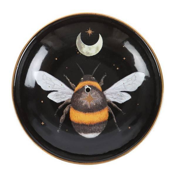 Material: Ceramic, New Bone China. Width: 9cm. Depth: 9cm. Height: 2cm. Design: Crescent Moon, Flat, Forest Bee, Stars.