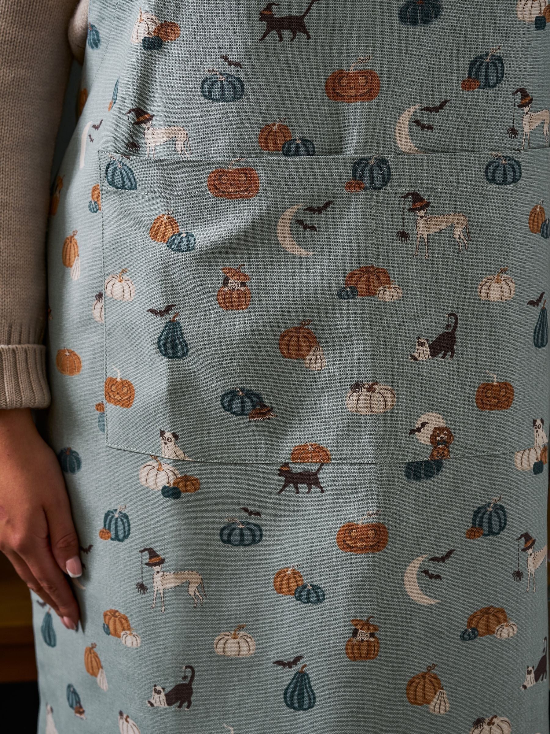 Make autumn cooking fun with this playful apron, featuring loveable cats and dogs dressed for Halloween. With carved pumpkins and details scattered across a seasonal backdrop, it’s perfect for adding a light-hearted touch to your kitchen. Made from 100% cotton with handy features like a front pocket and adjustable neck strap, perfect for baking! H 90 x W 72cm. Made from 100% cotton. Adjustable neck strap. Front pocket. Pattern may vary slightly. Coordinating items are available in the Paws & Pumpkins collection. Size: ONE.