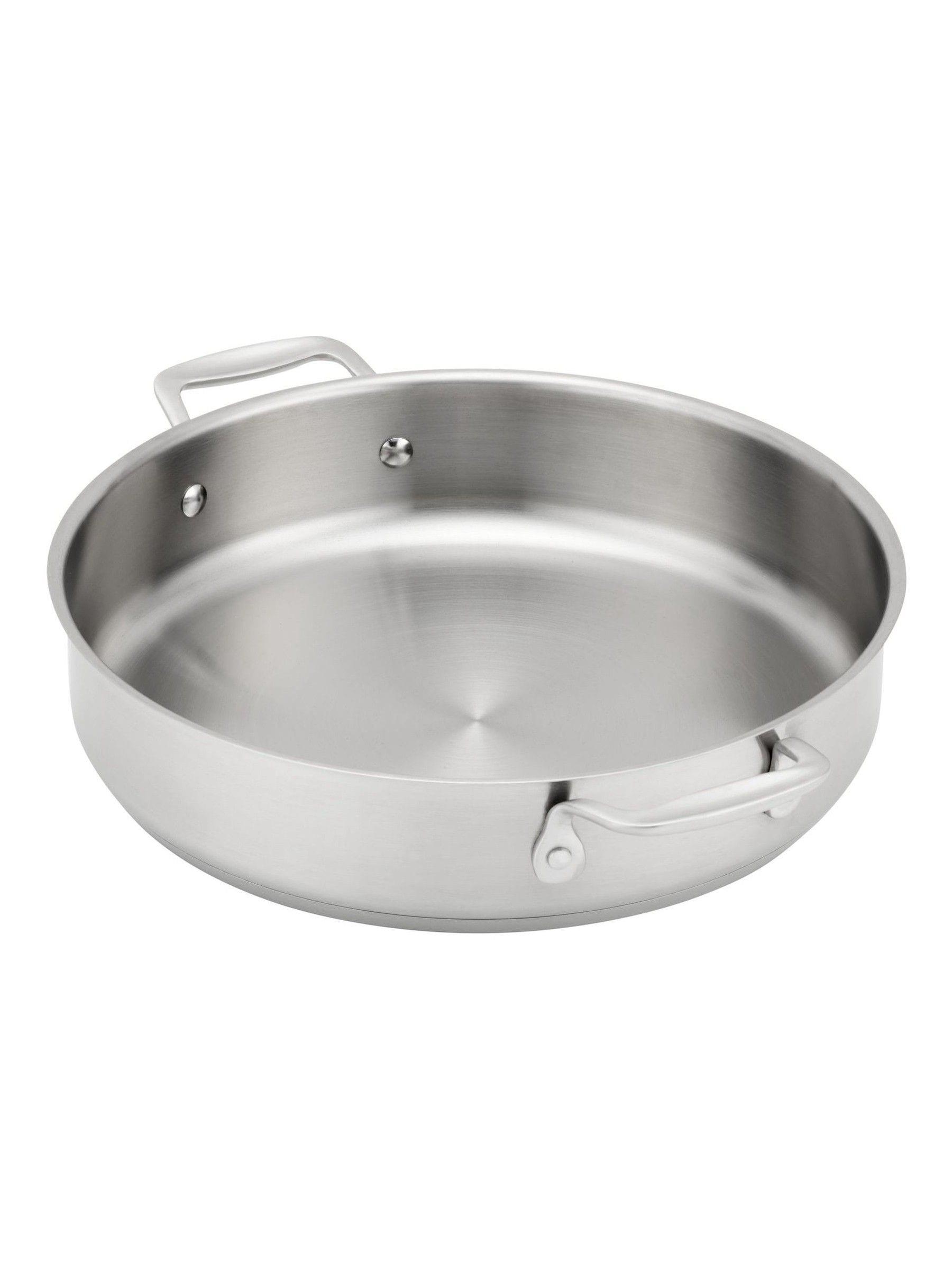 Perfect for starting on the hob and finishing in the oven. This 28cm shallow casserole dish features an uncoated stainless steel interior – ideal for confident home chefs who love to sear, deglaze and build rich, caramelised flavours. The high-conductivity base ensures fast, even heat distribution across all hob types, including induction. A modern matte exterior finish gives the pan a contemporary edge, designed to suit any kitchen style. Strong cast handles offer secure handling from stove to oven, with performance that holds steady up to 240°C. Key details: Material: Uncoated Stainless Steel – 18/10. Wide, straight-sided design ideal for casseroles, braises and one-pan meals. Dishwasher safe. Suitable for Gas, Halogen, Ceramic & Solid Plate. Induction suitable. Oven safe up to 240°C. Stellar Lifetime Guarantee. Size: 0.