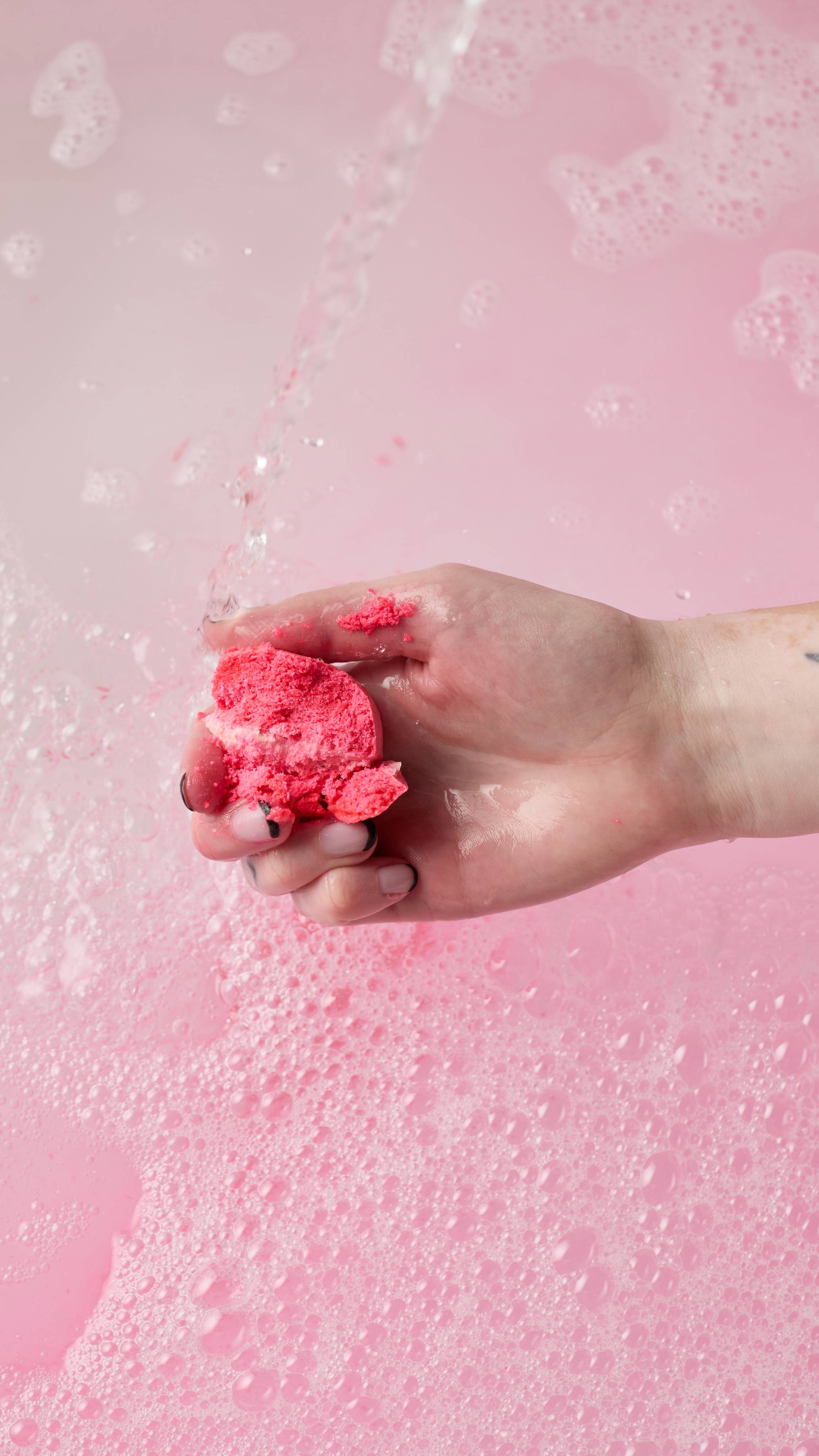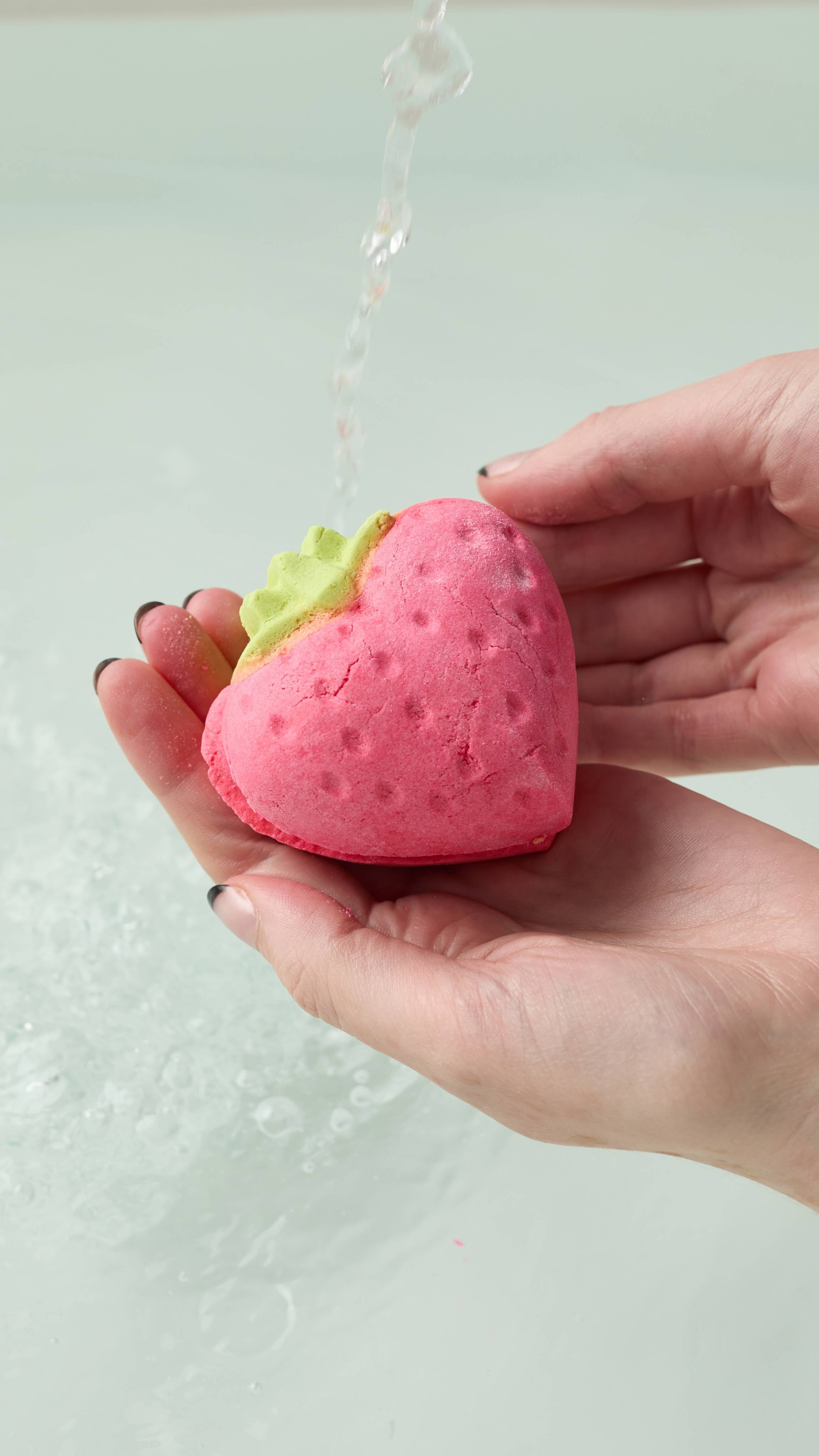 Crumble under running water, and swish these strawberry hearts for a berry good bath.