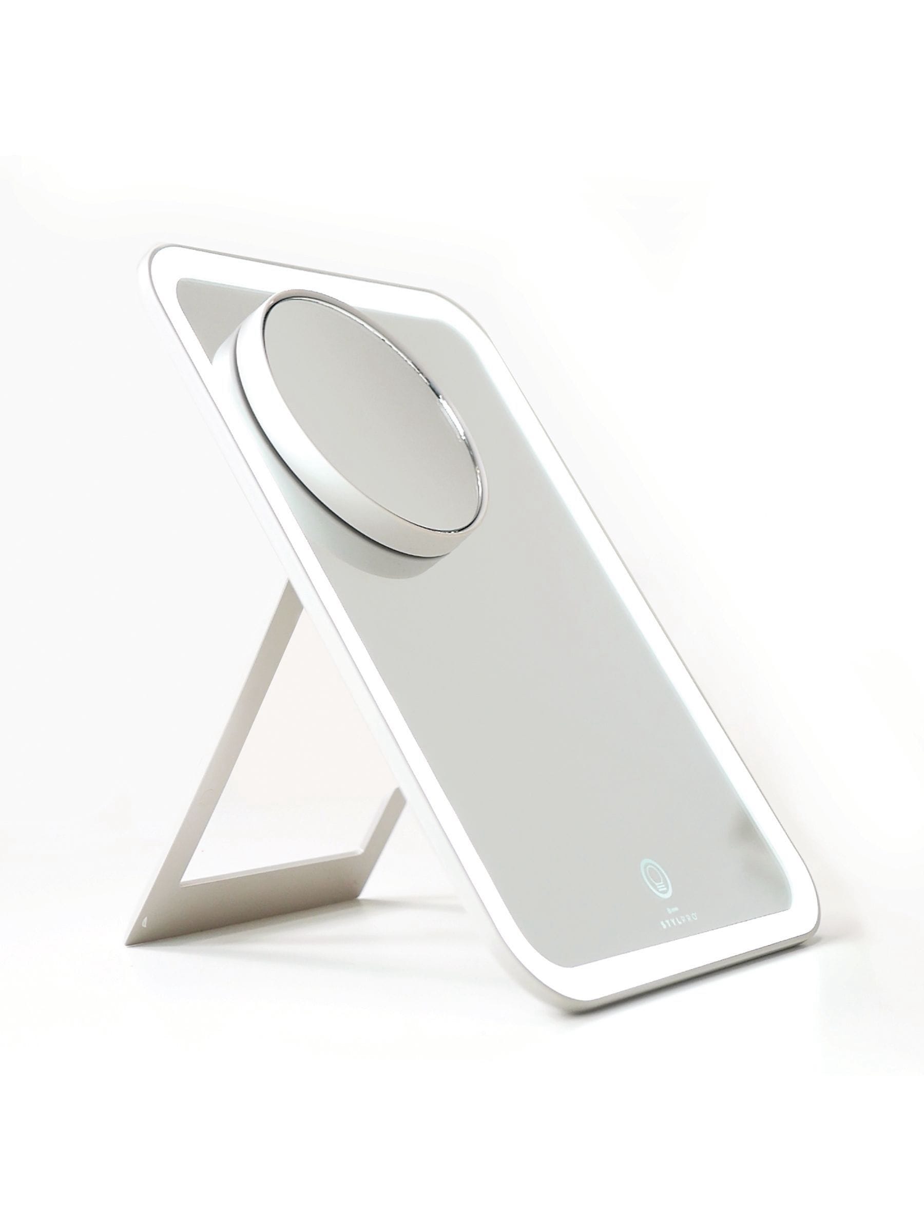 Always have the perfect set-up with the STYLPRO GLOW&GO MIRROR. With dimmable lighting, pop-out stand, and USB charging port, our LED Travel Mirror is there for all your makeup needs, whether you are at home or on the glow. Intensify your focus up to 10x with the magnetic magnifying mirror, seamlessly attaching itself to the mirror surface without leaving a trace. A sturdy protective sleeve is included to keep your reflection spotless.