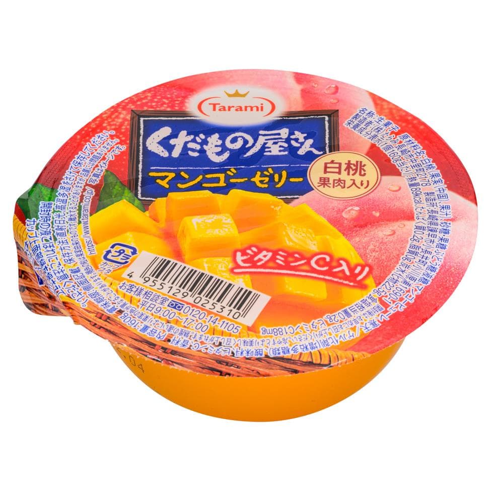 Indulge in the refreshing taste of Tarami Kudamonoyasan Jelly, a delightful blend of sweet mango and juicy white peach pulp. This light and delicious dessert is perfect for a refreshing treat anytime.