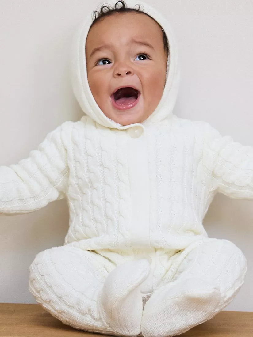 Wrap your little one in the snuggly warmth of this adorable knitted snowsuit, perfect for keeping them cosy and comfortable all winter long. Its easy zip-front design makes dressing and undressing a breeze. A must-have for parents seeking practicality and style.