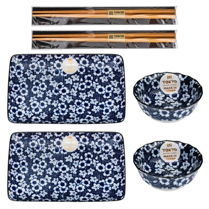 The Tokyo Design Studio 6-Piece Sushi Set offers an elegant and functional way to enjoy your sushi dining experience. This set includes two beautifully crafted plates, perfect for presenting your sushi creations in style. Additionally, it comes with two dipping sauce bowls, allowing you to complement your sushi with your favourite sauces. The set also includes two pairs of chopsticks, making it convenient for you and your dining partner to enjoy your meal together. All pieces are neatly packaged in a box, making it an ideal gift or a stylish addition to your kitchen collection. Whether you're hosting a sushi night at home or simply craving a taste of Japan, the Tokyo Design Studio Sushi Set is sure to elevate your dining experience.