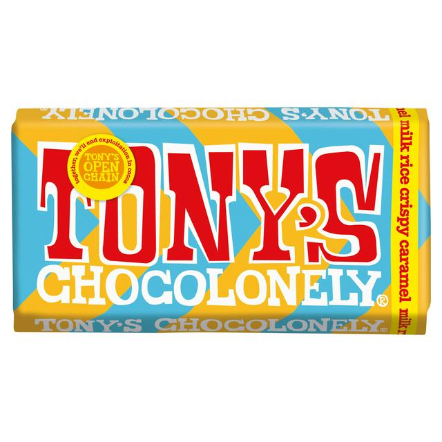 Product details Description Milk chocolate with pieces of caramel and puffed rice crisps. Tony's open chain - together, we'll end exploitation in cocoa 123 Traceable cocoa beans Crazy about chocolate, serious about people Hi there, we're Tony's chocolonely. We exist to end exploitation in cocoa. Not just the cocoa in...