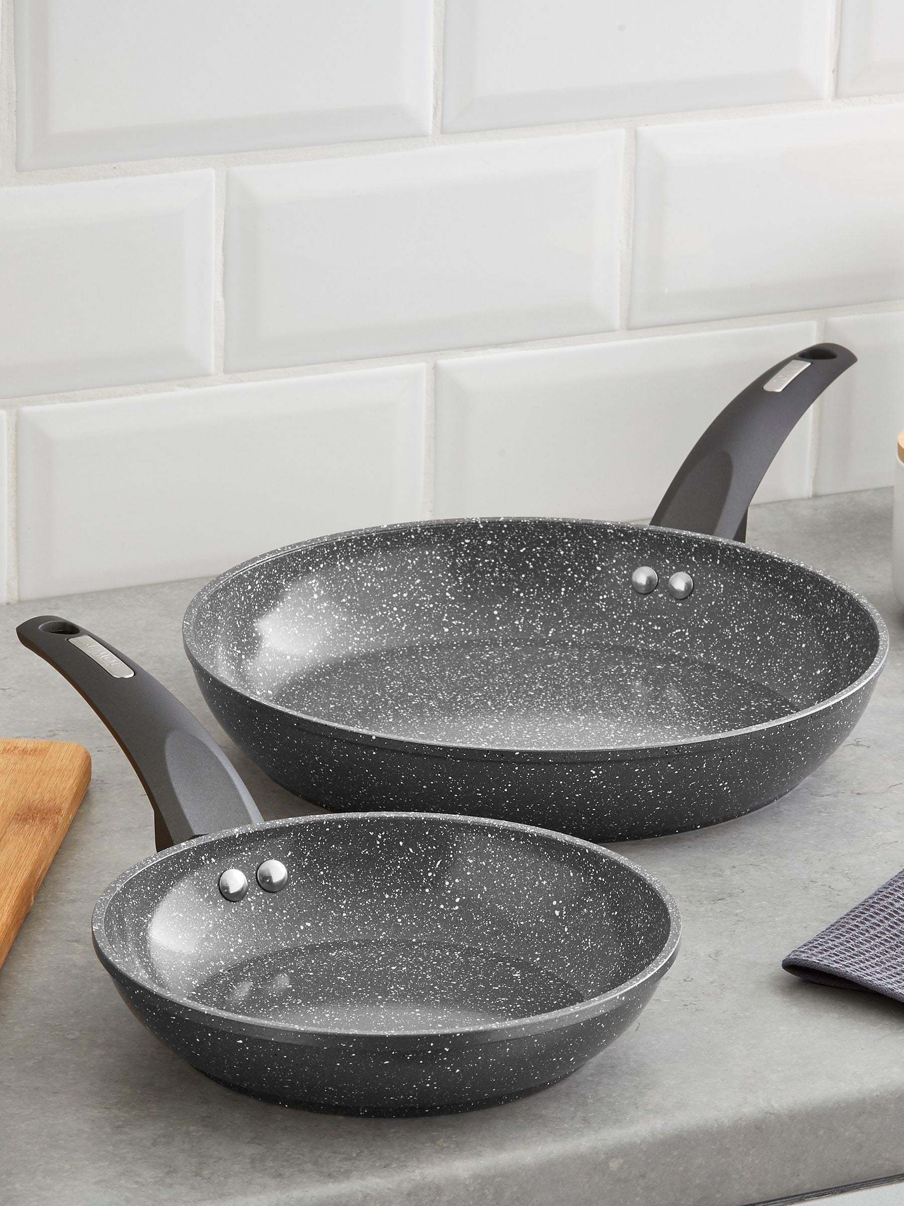Create deliciously healthy fat-free meals with the Tower Forged 2 Piece Frying Pan Set, the essential pan set for all of your kitchen needs including 20cm and 28cm frying pans. Featuring high-grade non-stick technology, the Cerastone coating is 5x stronger than other non-stick coatings, and is PFAS, PFOA, PFTE, lead and cadmium-free so you can enjoy healthy meals using little or no oil. Each frying pan is crafted with a high quality, long-lasting forged aluminium body that enables quick and easy adjustment of temperatures for more efficient cooking results with no hot spots, and they all have a softtex handle for comfortable control over your cooking. A bonded steel base provides even heat distribution to ensure your food is cooked thoroughly, and is designed to work with any hob type including induction. The non-stick ceramic coating prevents food from sticking to the surface, and this frying pan set is dishwasher safe for an even easier clean after cooking.